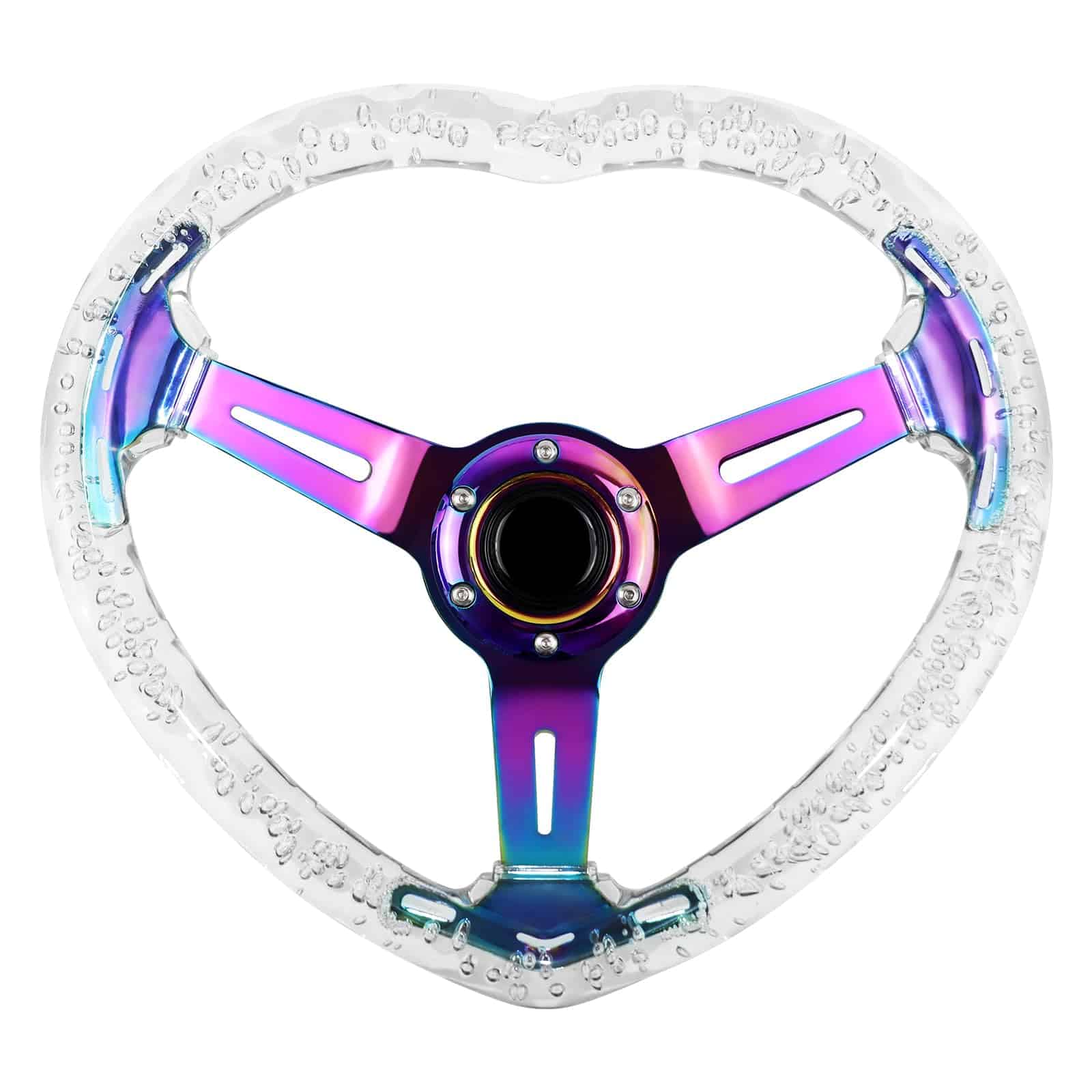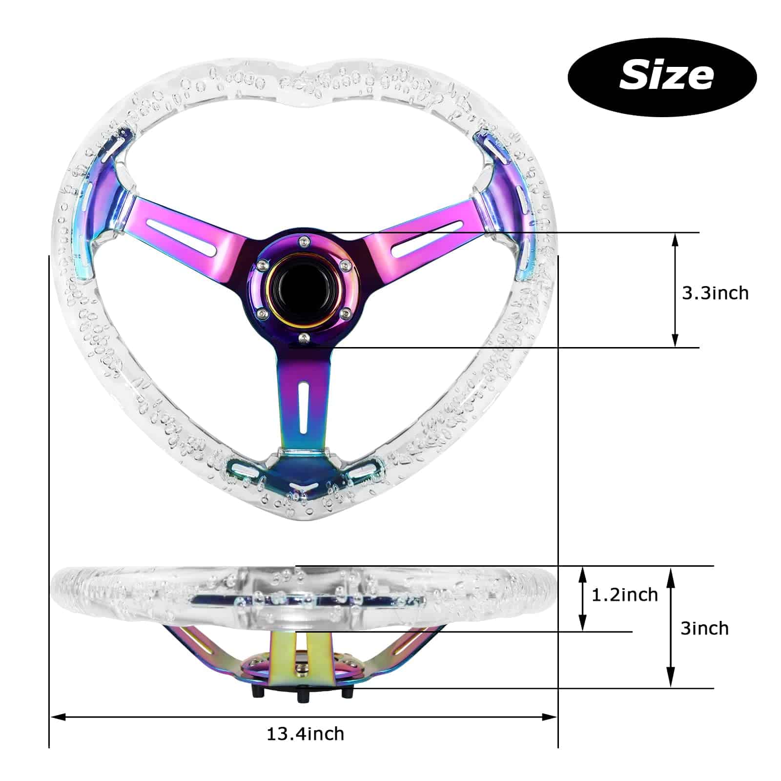 3. DISEÑO DE FORMA: El volante adopta forma de corazón, que es moderna y llena de sabor romántico, adecuada para tu coche de amor. El diseño angular facilita el control del volante, por lo que no tienes que preocuparte por el peligro de que se deslice la mano durante la conducción a alta velocidad.
