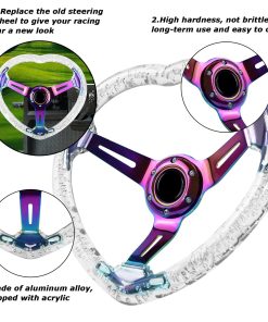 2. GRIP : El volante está envuelto con acrílico, sin rebabas afiladas del proceso de fabricación. Los bordes elegantes hacen que este volante se sienta genial al tacto. Tamaño preciso, borde plano, gran flexibilidad y durabilidad, no es fácil de romper. Resiste altas temperaturas, rayos UV, luz solar intensa, disolventes y productos químicos comunes. Material extremadamente fácil de limpiar, ya sea sudor, manchas o polvo, un rápido paño refrescará el volante.