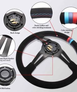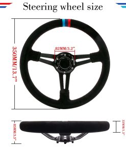 Volante de juego de ante de 350 mm (13,6 pulgadas) con 6 pernos de aluminio de 90 mm (3,5 pulgadas) de profundidad con botón de bocina y llave de cable de HTRACING. Marco de volante de aluminio y envuelto con cuero de gamuza, que le proporciona un agarre cómodo y una textura especial para mejorar la operabilidad y resistencia. Compatible con la mayoría de los adaptadores de cubo estándar, adecuado para la mayoría de los vehículos y coches de carreras. Apariencia magnífica, además de decoración para embellecer su auto, la parte del soporte está completamente ennegrecida, lo que mejora en gran medida su estilo de carreras. Tamaño razonable de 350 mm / 13,6 pulgadas de diámetro que permite al conductor hacer la misma vuelta con mayor facilidad. Ofrecemos 12 meses de garantía y servicio al cliente de por vida. Si tiene alguna pregunta sobre el producto, por favor contáctenos lo antes posible.