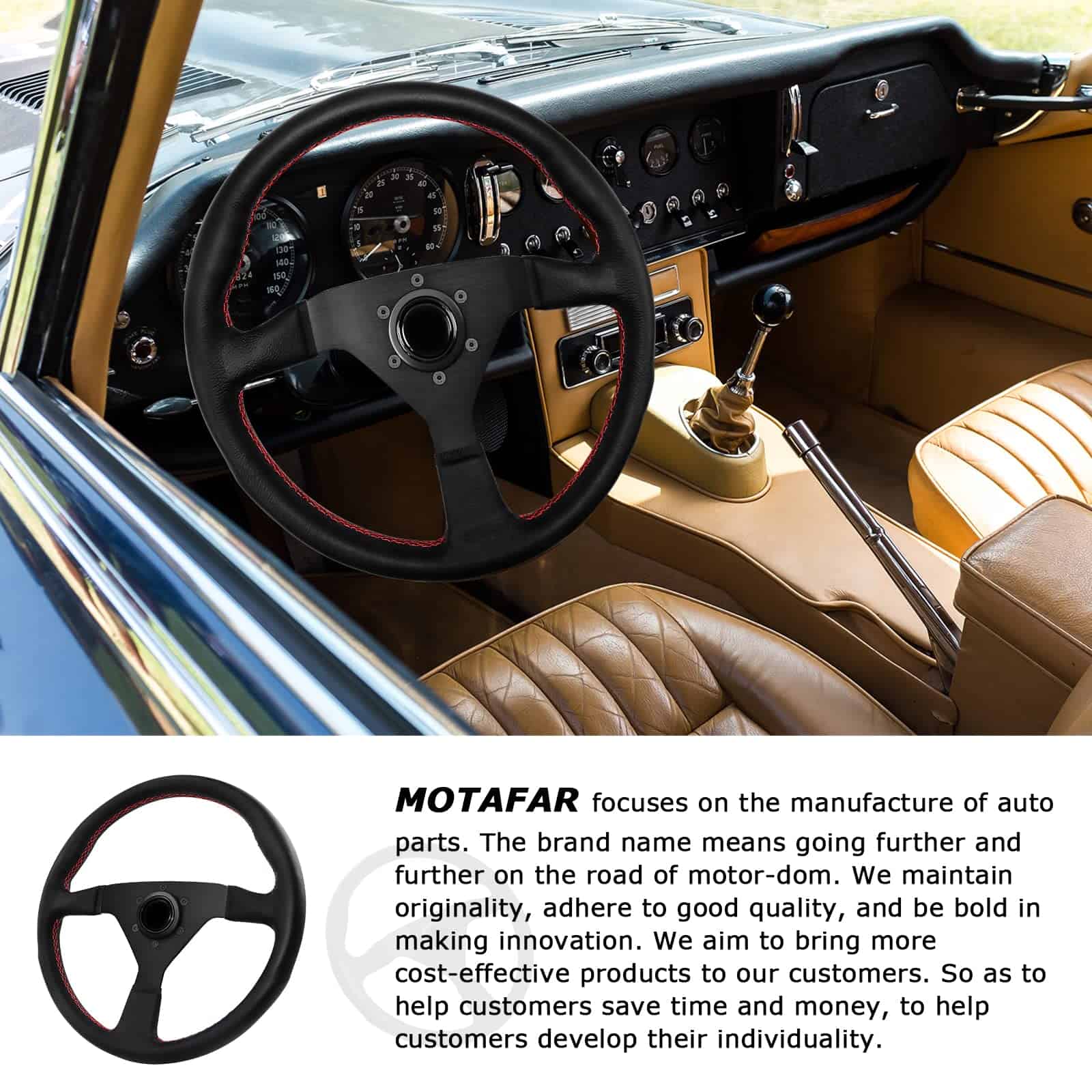 Volante de Carreras Universal MOTAFAR, 13.4″ 6 Tornillos