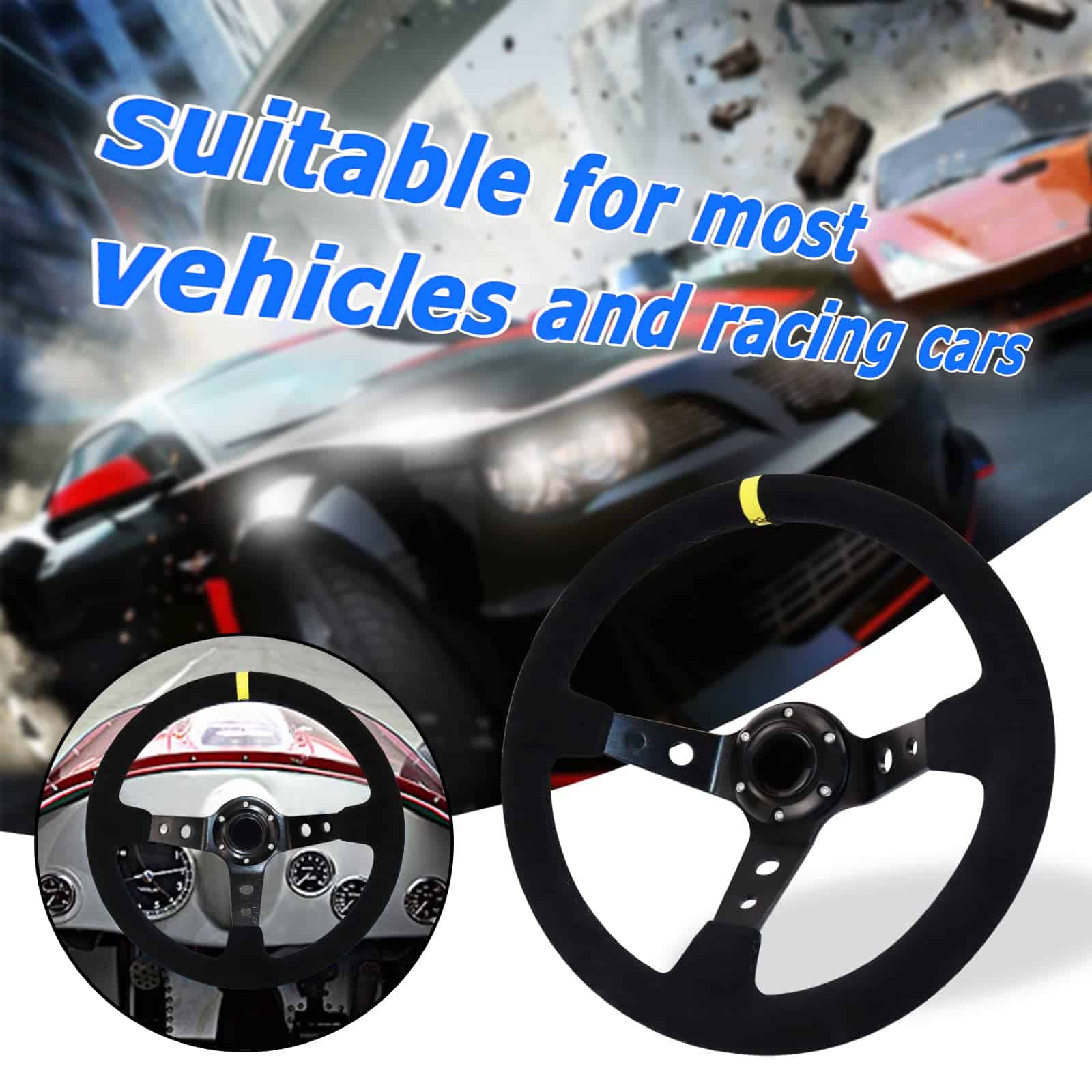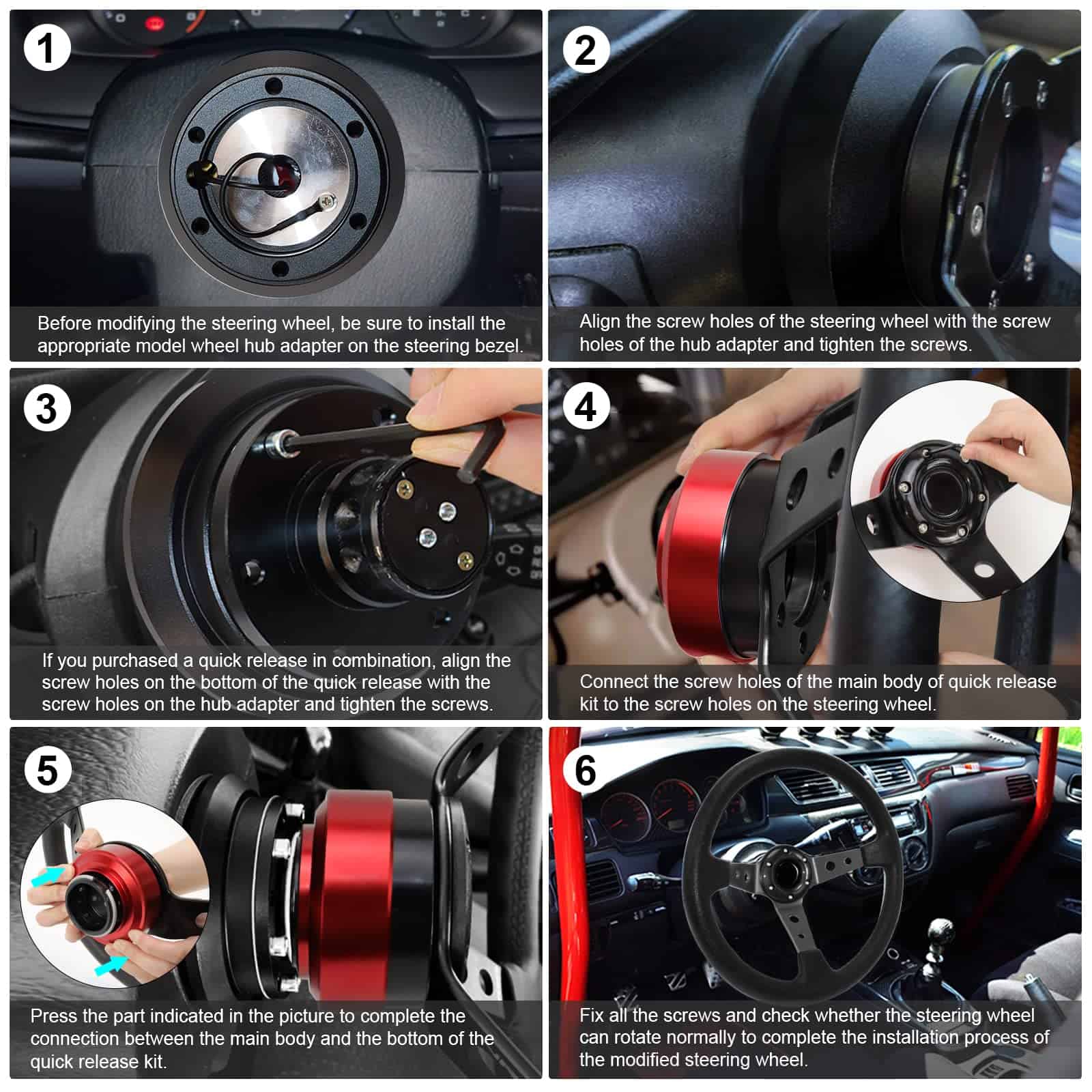 4. COMPATIBILIDAD: Este volante de carreras es compatible con la mayoría de los adaptadores de cubo estándar y es adecuado para la mayoría de los vehículos y autos de carreras. Es adecuado para carreras/rally/motorsport y conducción de automóviles simulados. Se recomienda buscar videos relacionados de pasos de instalación específicos en YouTube. (Nota: El adaptador de cubo no está incluido. Antes de la instalación, seleccione el adaptador de volante adecuado para el modelo de su automóvil).