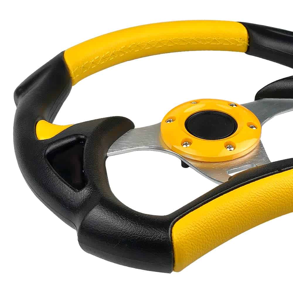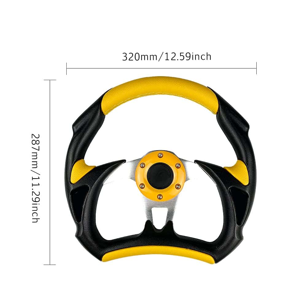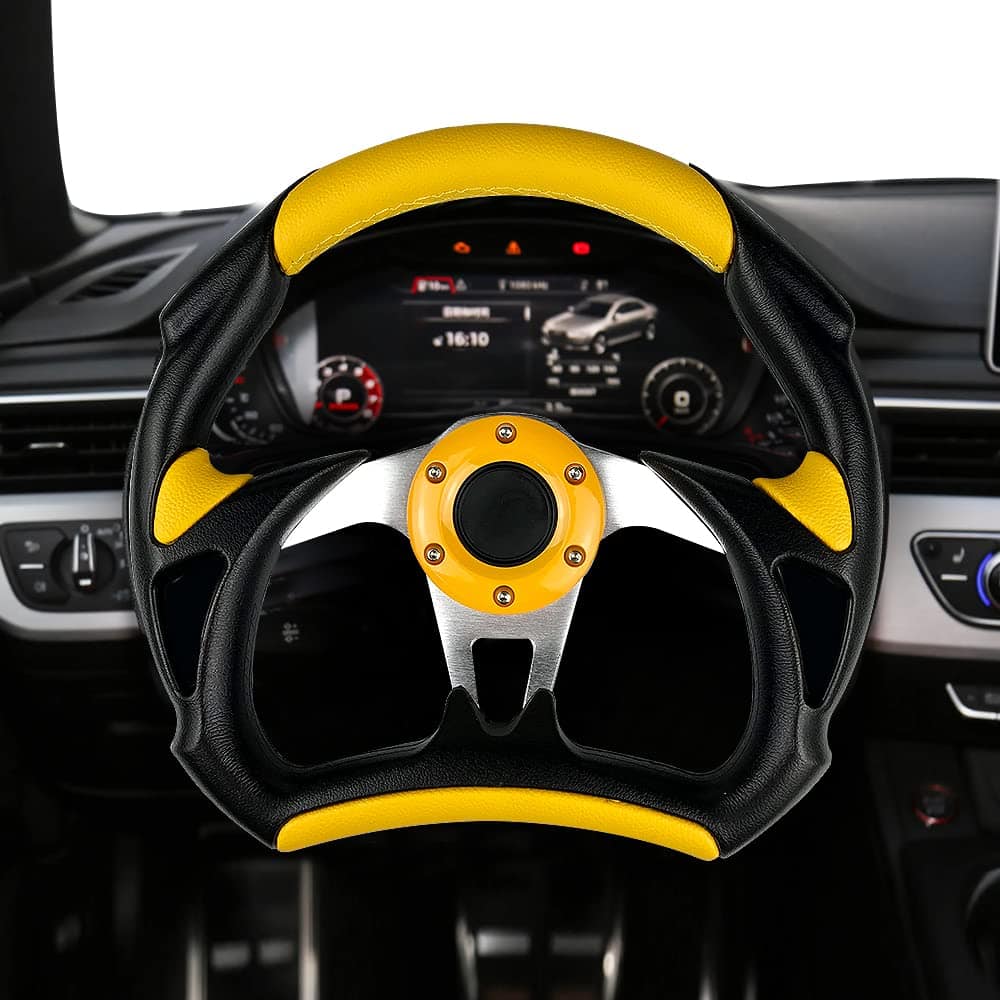 Los volantes son la primera forma de transformar tus habilidades de conducción o carreras al vehículo. La mayoría de los volantes de OE de fábrica tienen un diámetro de 380 mm. Al cambiar a un volante deportivo más pequeño, el conductor puede hacer los mismos giros con menos esfuerzo debido al aumento de la palanca. Transmitiendo perfectamente el poder, las emociones, la emoción y la emoción de las carreras de ti a tu vehículo y viceversa, tendrías una completa sincronización con tu auto. Actualizar un volante de carreras o simplemente el buje ya te puede dar una nueva experiencia de conducción. Nuestros volantes también están diseñados para garantizar el mejor agarre para un mejor rendimiento. Especificación: Material:Aluminio+Cuero Diámetro:12.5″ Color:Negro de Fibra de Carbono/Rojo/Azul/Amarillo/Plata(Opcional) Paquete Incluido: 1 x Volante