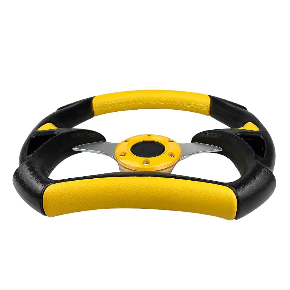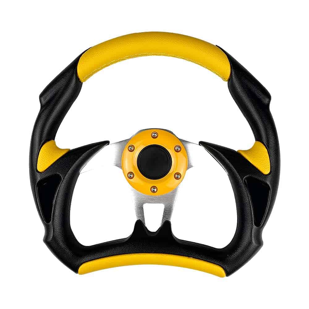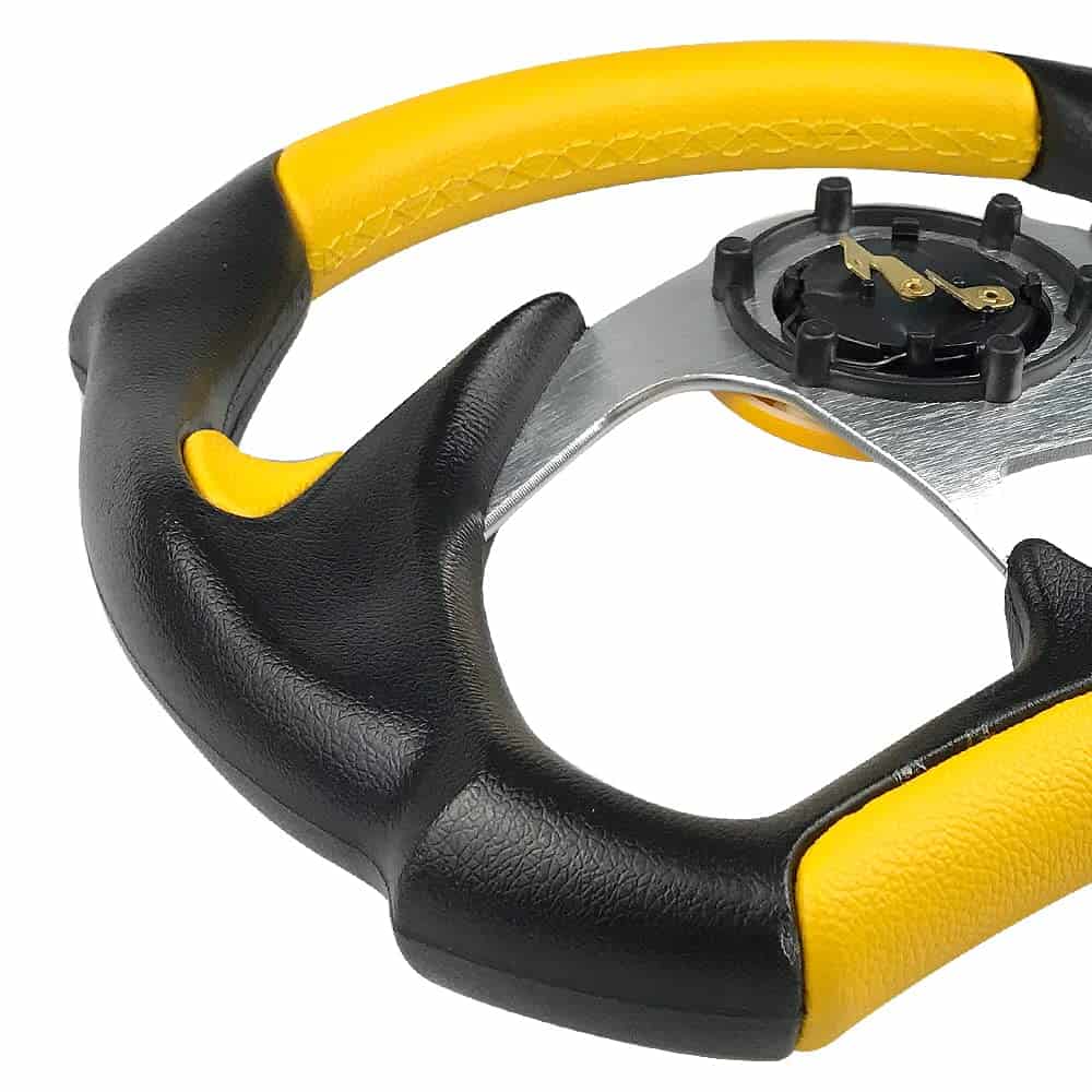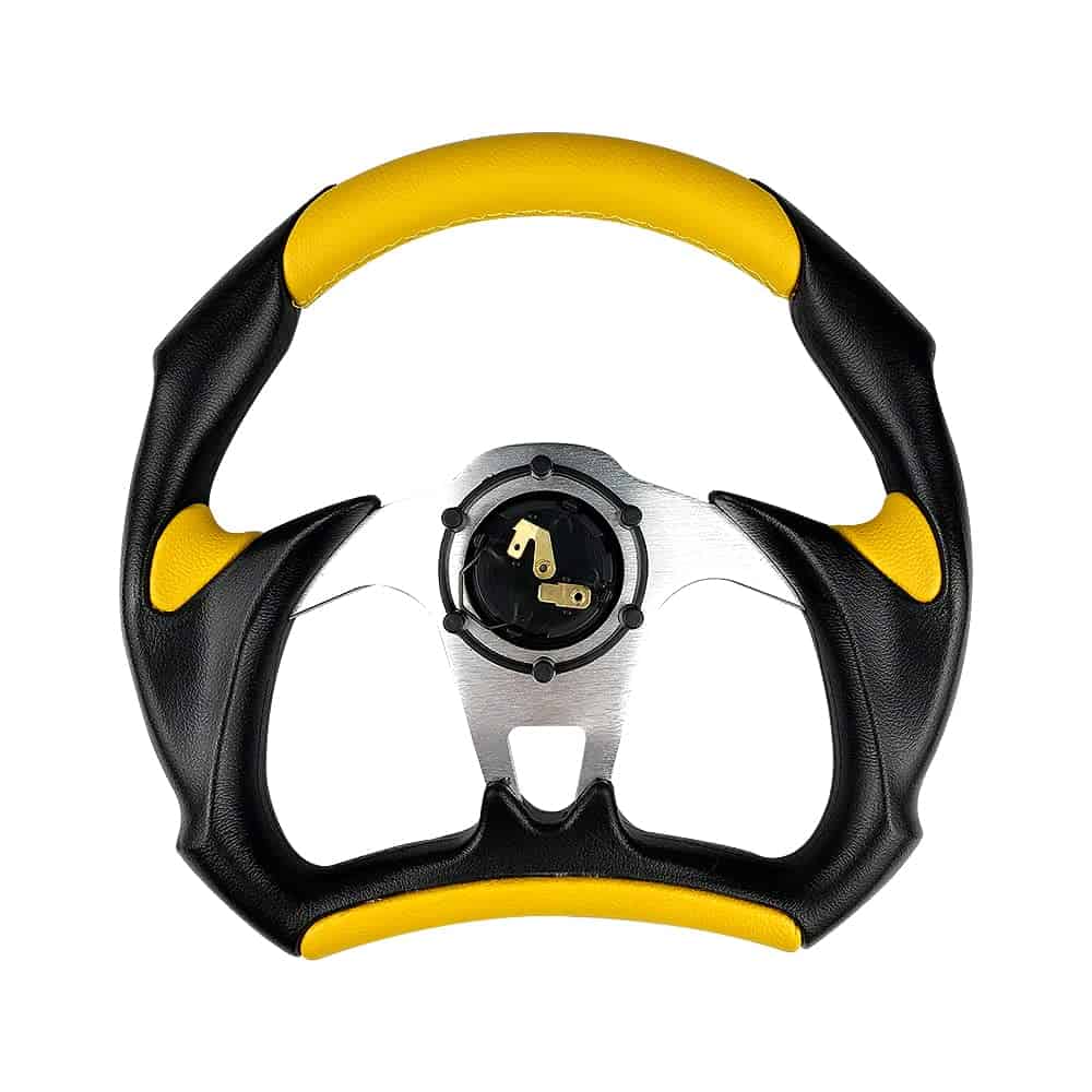 Los volantes son la primera forma de transformar tus habilidades de conducción o carreras al vehículo. La mayoría de los volantes de OE de fábrica tienen un diámetro de 380 mm. Al cambiar a un volante deportivo más pequeño, el conductor puede hacer los mismos giros con menos esfuerzo debido al aumento de la palanca. Transmitiendo perfectamente el poder, las emociones, la emoción y la emoción de las carreras de ti a tu vehículo y viceversa, tendrías una completa sincronización con tu auto. Actualizar un volante de carreras o simplemente el buje ya te puede dar una nueva experiencia de conducción. Nuestros volantes también están diseñados para garantizar el mejor agarre para un mejor rendimiento. Especificación: Material:Aluminio+Cuero Diámetro:12.5″ Color:Negro de Fibra de Carbono/Rojo/Azul/Amarillo/Plata(Opcional) Paquete Incluido: 1 x Volante