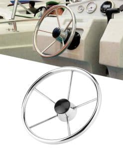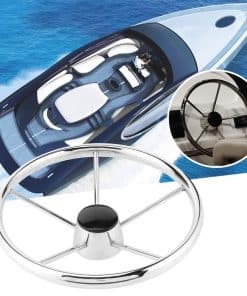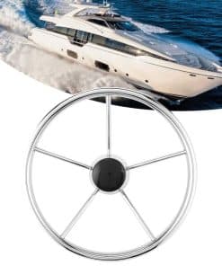 Especificación: Condición: Producto Nuevo Tipo de elemento: Volante de dirección de barco Material: Acero inoxidable Color: Plata Tamaño: 3/4 de pulgada x 5 radios Diámetro: Aprox. 342 cm / 13.5in para Eje Tamaño: Aprox. 19mm / 0.75in Lista de paquetes: 1 x Volante de dirección de barco de 13-1 / 2 pulgadas 1 x Cubierta de plástico