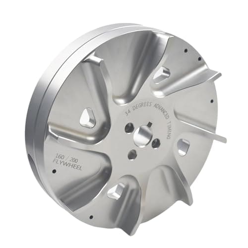 Volante de Inercia de Aluminio Billet Slipstream, 3.3 lbs, Para Predator 196cc, 212cc, Para Honda GX200, Avance de encendido de aproximadamente 34 grados. Este volante de inercia de aluminio billet presenta un diseño único de aletas para una baja resistencia al viento, lo que proporciona una mayor potencia en comparación con el diseño de aletas tradicional. Equipado con un imán de neodimio de tierras raras y equilibrado para un rendimiento óptimo. Asegúrate de que tu motor funcione de manera eficiente con este volante de inercia ligero y duradero.