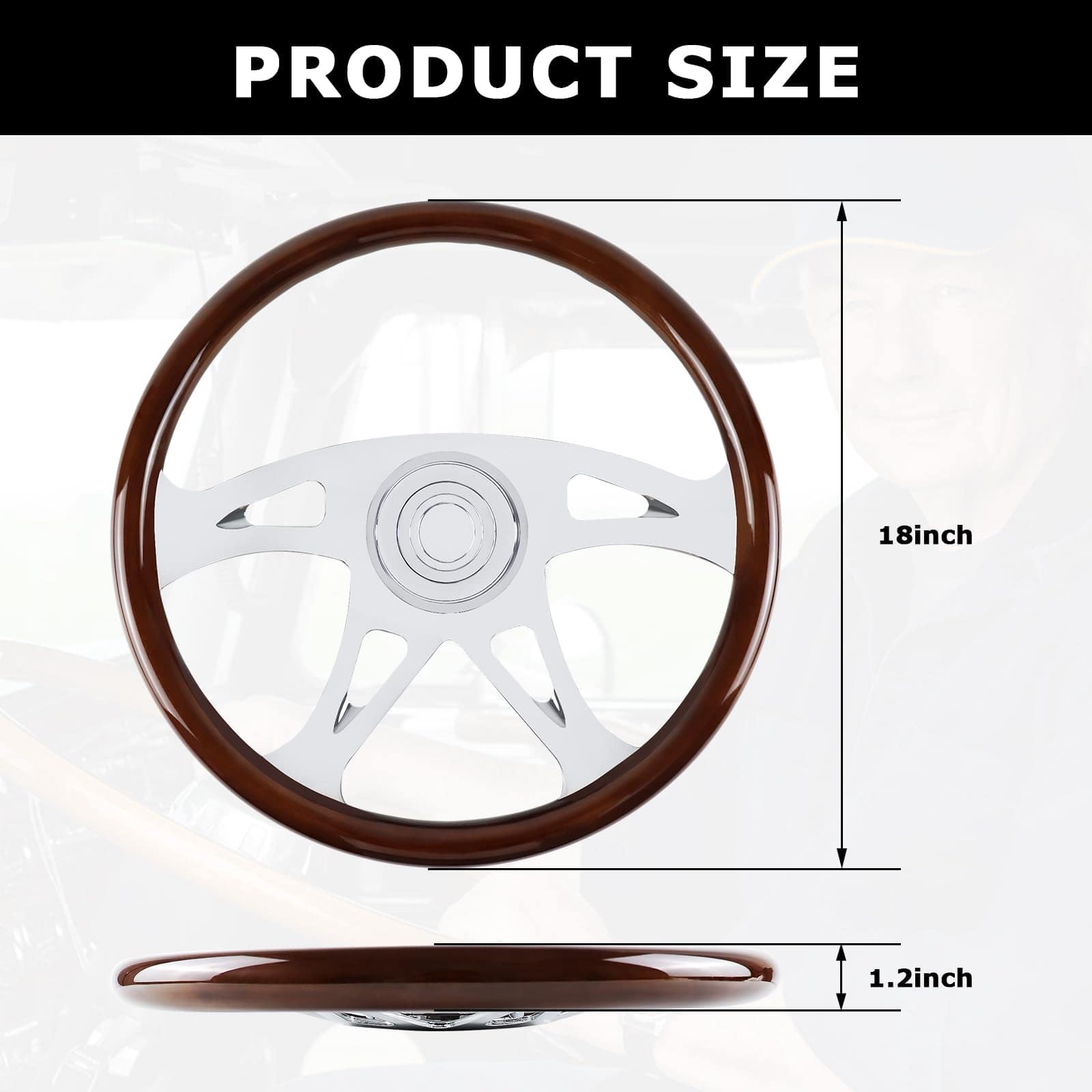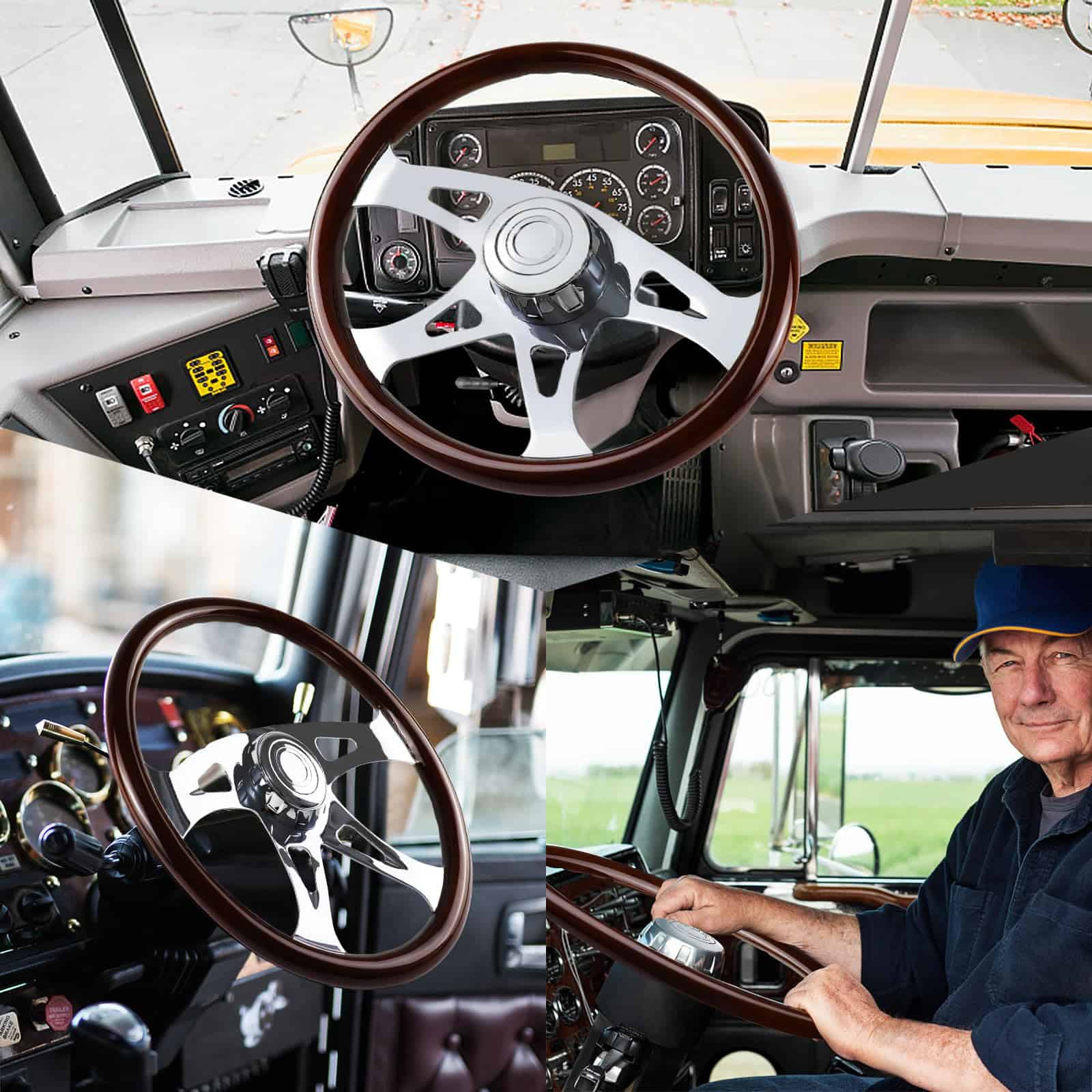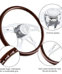 Volante de Madera de 18″ para Camión Chrome 4 Radios, para
