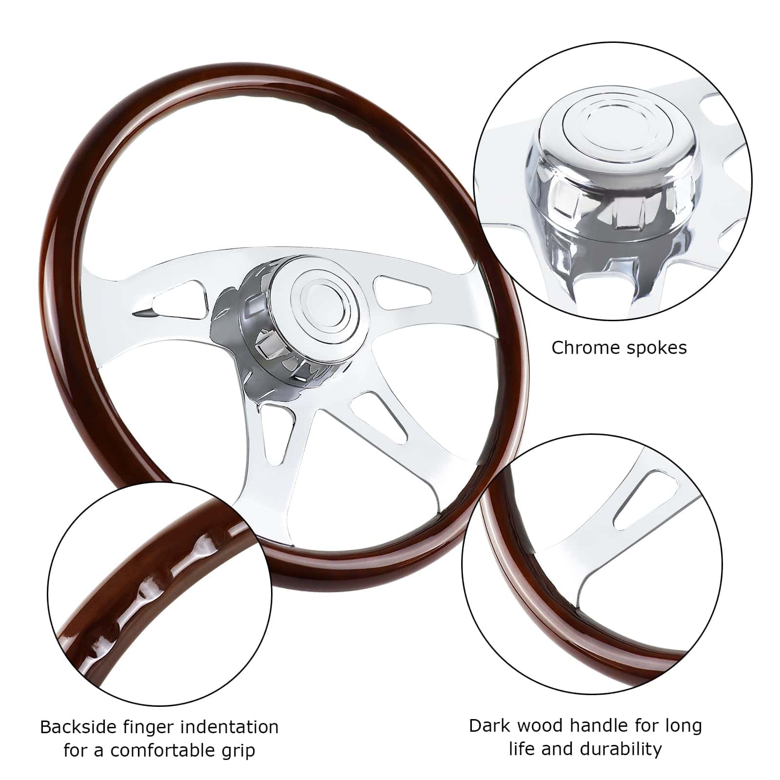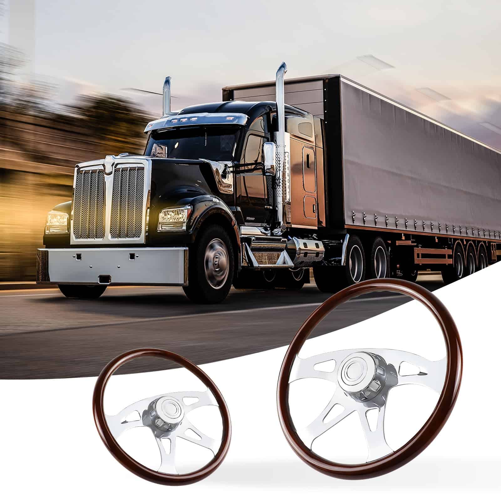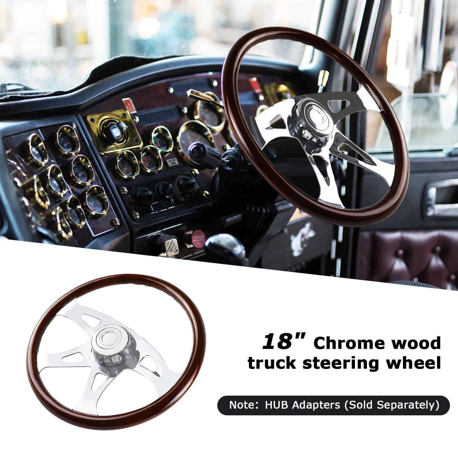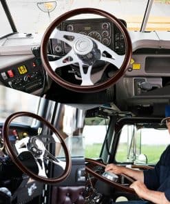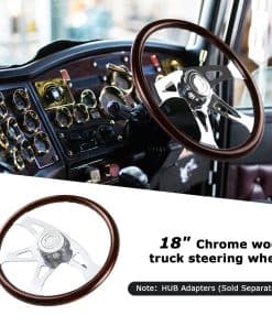 Volante de madera de 18 pulgadas con 4 radios cromados, diseñado para camiones Kenworth, Peterbilt, Volvo y Freightliner. Este volante ofrece un agarre seguro gracias a los surcos suaves a lo largo de la parte posterior, fabricado con una mezcla de madera de caoba y radios de acero inoxidable cromados para una apariencia elegante y duradera. La instalación requiere una base de montaje específica para cada vehículo (adaptador), que se vende por separado. En QYMOPAY nos enfocamos en la calidad de nuestros productos y en la satisfacción del cliente, por lo que ante cualquier problema de calidad, no dude en contactarnos.