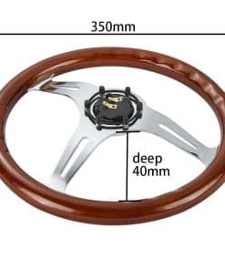 Volante de madera de estilo clásico de 350 mm de profundidad con marco de aluminio de alta calidad. Se adapta universalmente con adaptadores de cubo de dirección de 6 pernos. Incluye un botón de bocina individual, se recomienda la instalación profesional. Nota: Es necesario usar un kit de cubo antes de instalar el volante. Por ejemplo, si su auto es un Honda Civic 2016, debe tener un kit de cubo de Honda Civic 2016 para poder instalar este volante. Si no tiene el kit de cubo, no podrá instalar este volante.