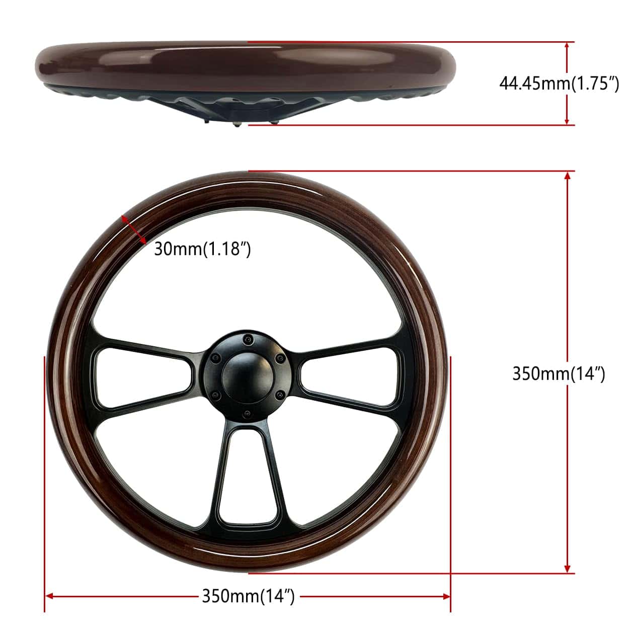 Volante de Madera Vintage de 14 Pulgadas 3 Radios Universal