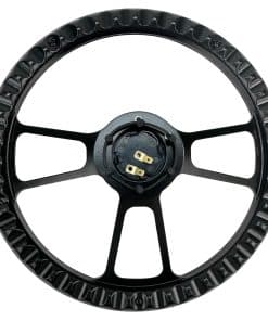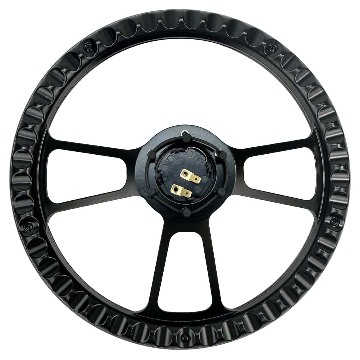 Volante de Carreras de Madera de 14 Pulgadas con 3 Radios Universales, Negro de Aluminio con Diseño Vintage de Madera y Botón de Claxon, Perfecto para todo tipo de competiciones automovilísticas como Carreras, Rally y Deportes de Motor.