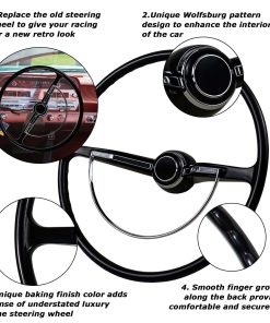 Este volante retro es compatible con: Tipo 1 Beetle / Bug 1962-1971, Type 3 Squareback, Fastback, Notchback 1962-1971, Karmann Ghia 1962-1971. (Los modelos mencionados anteriormente se pueden instalar directamente sin la base/adaptador, otros modelos necesitan instalar una base/adaptador adecuado si desea instalar este volante)