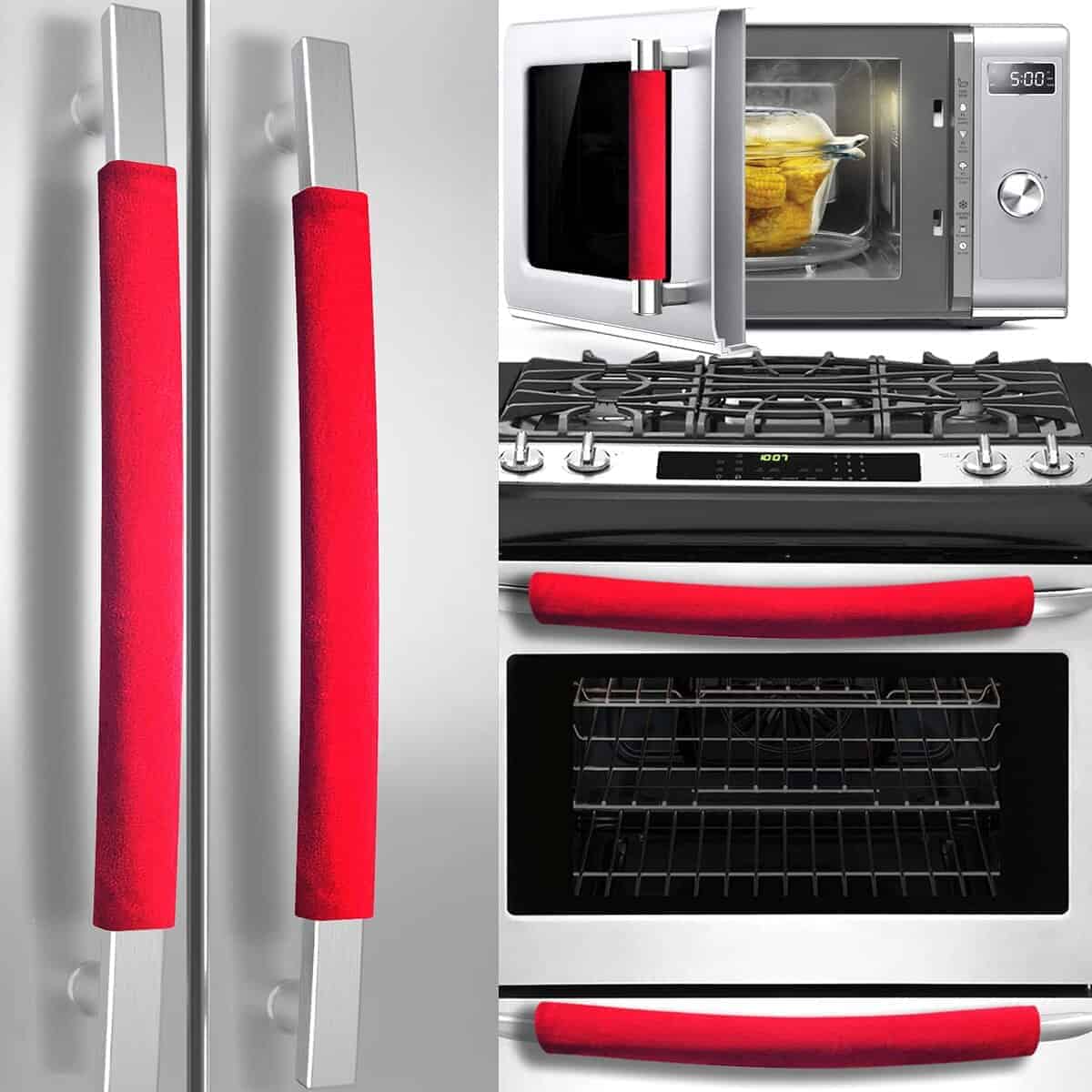 5. TAMAÑO DE LA CUBIERTA DE MANIJA – El set incluye 5 piezas. 4 piezas más largas de 15.7 pulgadas (para neveras, estufas u otras manijas largas). Una pieza corta de 6.3 pulgadas (para microondas u otras manijas cortas).