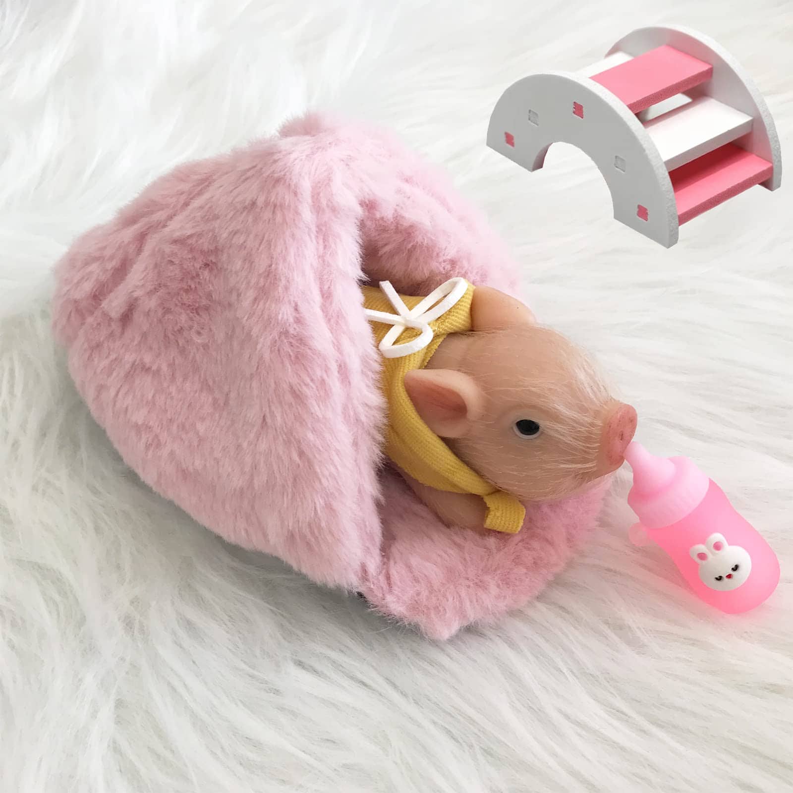 Excelente Calidad y Artesanía. El piglet de silicona renacido es tan suave y pesado. Creado tan hermoso y adorable. Totalmente hecho a mano por nuestro artista. Está hecho de material de silicona y tiene una nariz, orejas y pies pintados a mano, y pelo implantado a mano. Ojos acrílicos. Un Regalo Sorprendente Para Tus Niños. Es realmente una sorpresa y un regalo único para tu pequeño niño o niña como tu hija, nieta, nieto en cumpleaños, Día de Acción de Gracias, Navidad, Pascua, Año Nuevo, Día de San Valentín. Seguridad del Material. El mini piglet renacido para bebés está hecho de silicona completa, sin olor, seguro para que tus hijos jueguen. El realista pelo implantado a mano hace que el piglet se vea tan real, encantador y lindo. Es una muñeca de arte hecha a mano perfecta para que los artistas la coleccionen. Accesorios de Piglet Sorpresa. Más de increíbles 6 accesorios de silicona piglet para satisfacer a tu hijo con juegos de roles y de cuidado. Incluye: piglet de silicona 1, pañuelo elegante 1, cama de pig 1, biberón 1, puente arcoíris 1, correa de piglet 1, tiara de lazo 1.