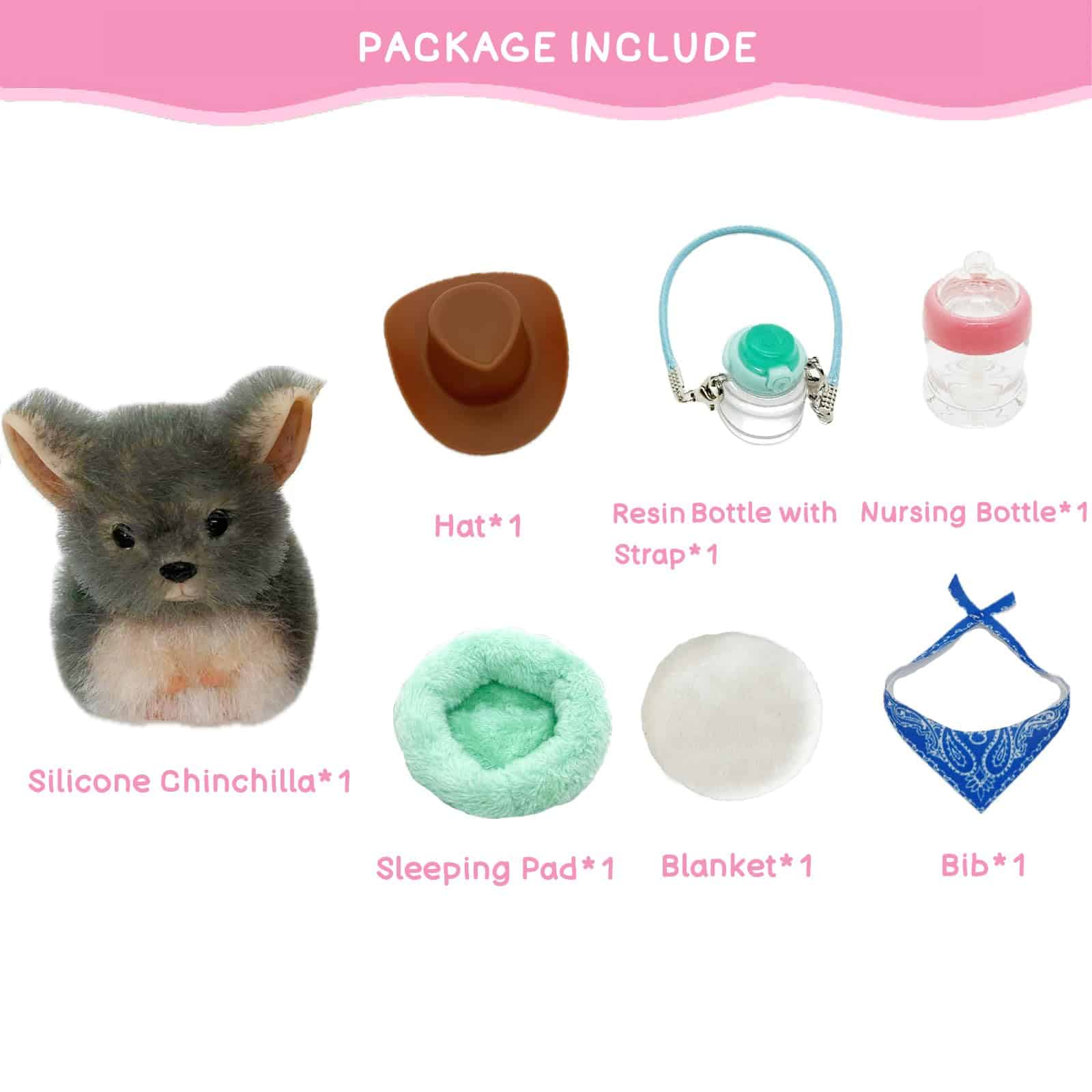 Excelente calidad y artesanía. La chinchilla de silicona es tan suave y pesada. Hermosamente elaborada y adorable. Totalmente hecha a mano por nuestro artista. Está hecha de material de silicona y tiene una nariz, orejas, pies y pelo enraizado a mano pintados a mano. Atractiva decoración. La muñeca de arte atraerá la atención de todas las personas. Es un regalo único y valioso para tu niño o niña como tu hija, nieta o nieto en cumpleaños, Día de Acción de Gracias, Navidad, Pascua, Año Nuevo o Día de San Valentín. Seguridad del material. Parece un lindo ratón o un hámster. Totalmente de silicona, sin olor, seguro para que tus hijos jueguen. ¡El pelo realista implantado a mano hace que la chinchilla se vea tan real, encantadora y linda! Es una muñeca de arte hecha a mano perfecta para que los artistas la coleccionen. Paquete sorpresa. Increíbles accesorios para satisfacer a tu hijo en juegos de rol y de cuidado. Incluye: Chinchilla de Silicona 1, Biberón 1, Manta 1, Cojín para Dormir 1, Botella de Resina con Correa 1, Babero 1, Sombrero de Estilo Vaquero 1.