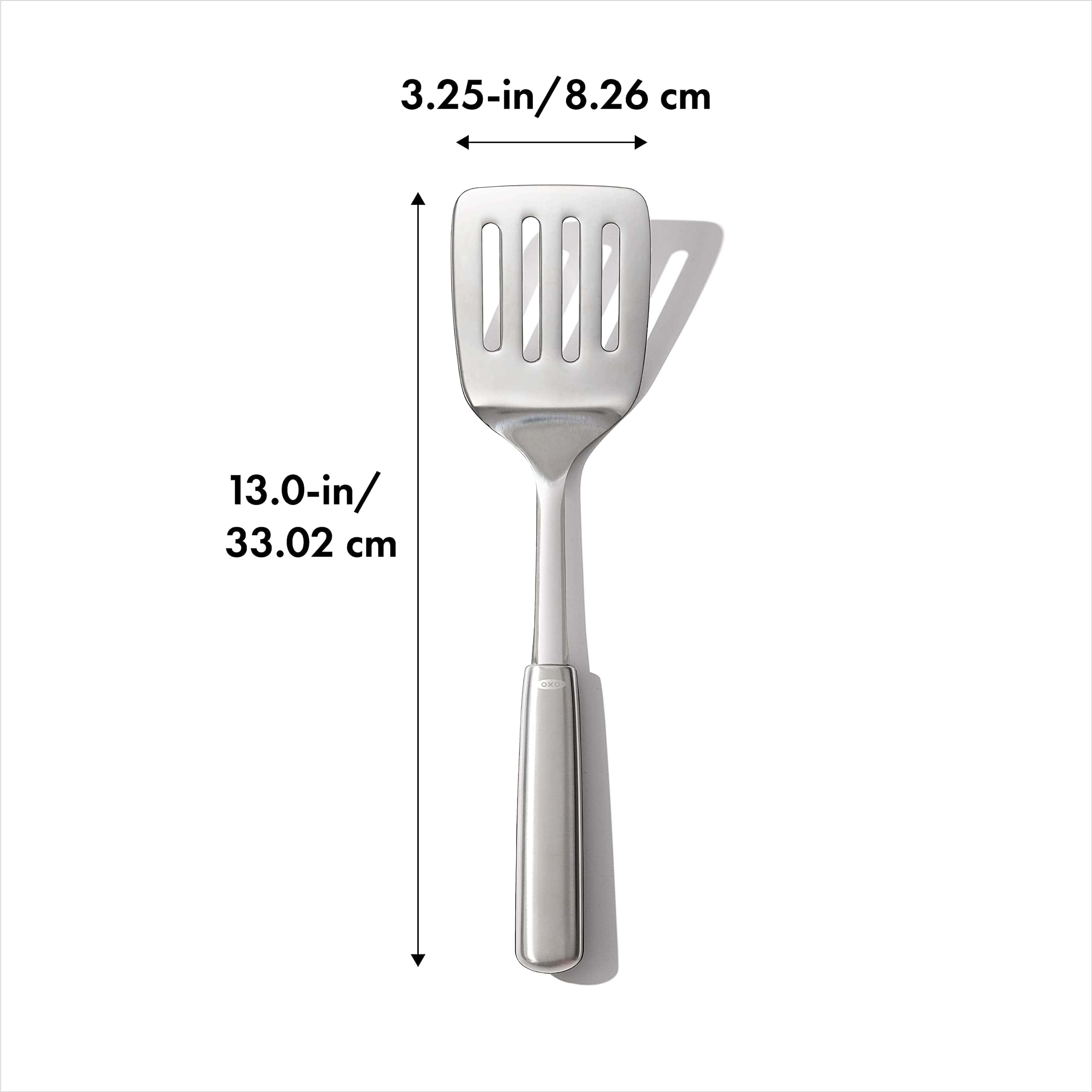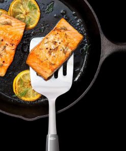 Con el Volteador de Acero para Cocina OXO en la mano, podrás cortar carne molida, levantar hamburguesas y voltear huevos con confianza. Cuenta con una cabeza extra resistente que es lo suficientemente flexible como para deslizarse debajo de los alimentos pero lo suficientemente fuerte como para hacer el trabajo de forma segura. Además, tiene un mango de acero inoxidable con un agarre antideslizante que sentirás que fue hecho específicamente para tu mano. Apto para lavavajillas.