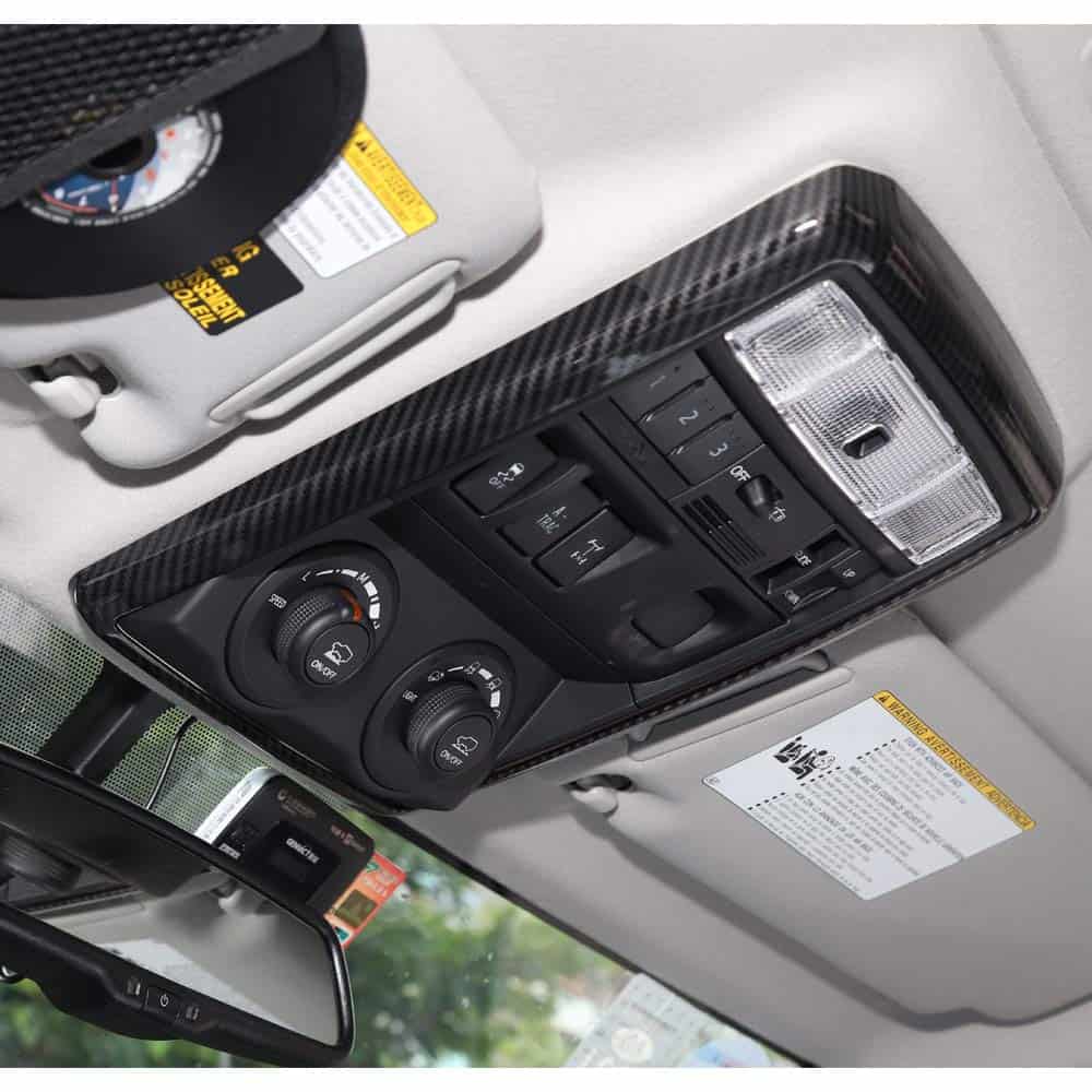Muy fácil de quitar: verter el alcohol sobre el paño y limpiar con el paño, no dañará el coche original. Paquete incluido: 1 pieza para Cubierta de Marco de Luz de Lectura 4runner para Toyota 4runner SUV 2010-2019 TRD (Grano de Fibra de Carbono)