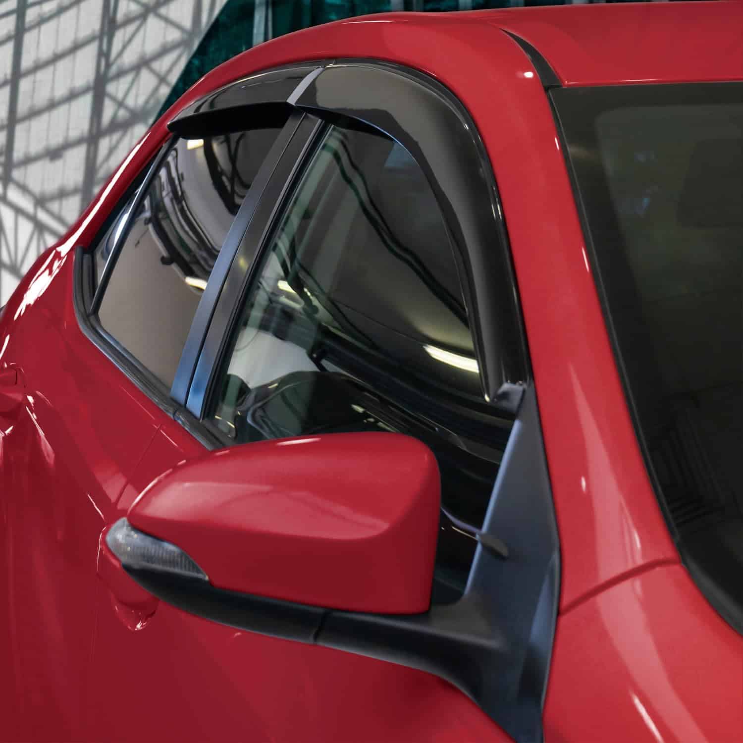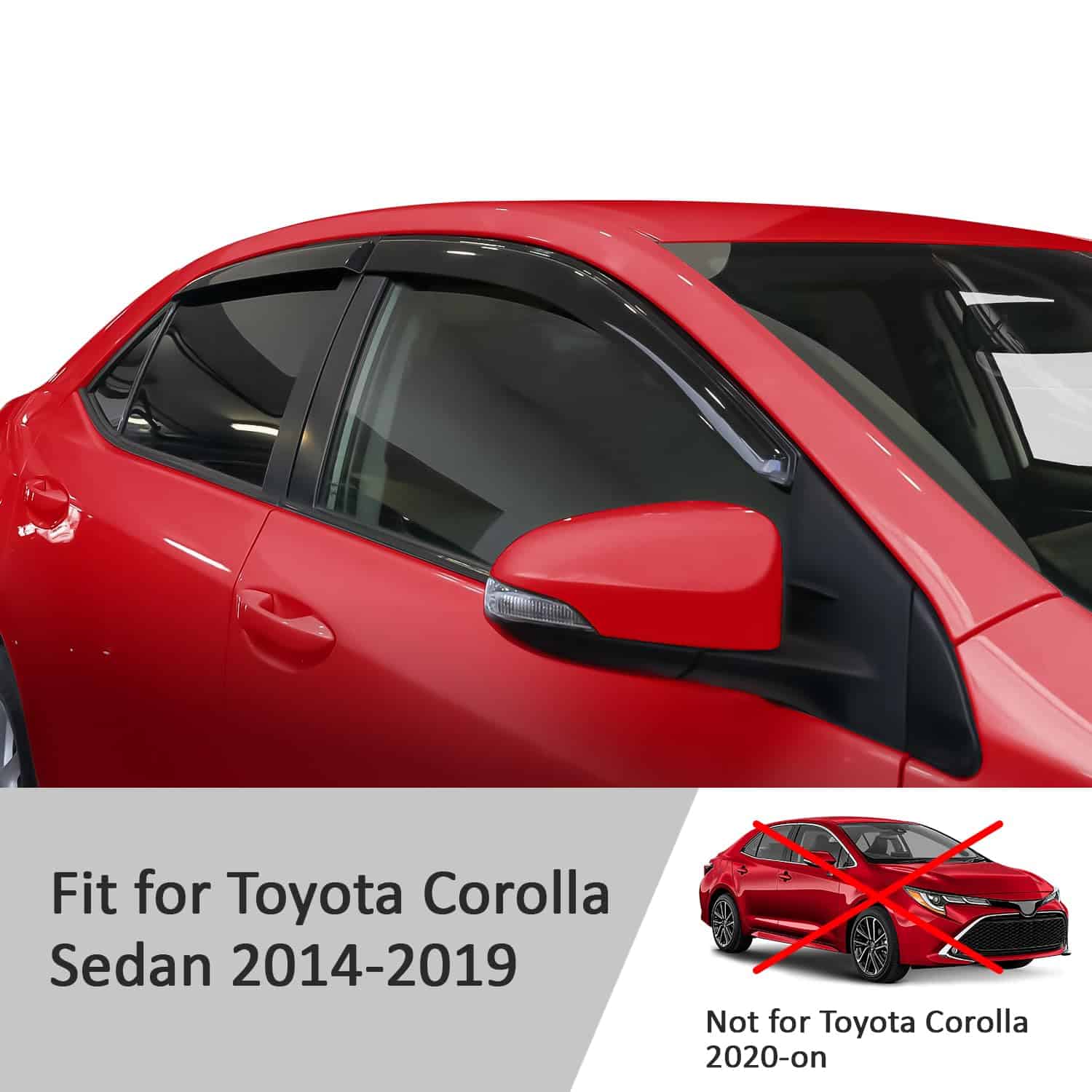 Voron Glass Tape-on Extra Durable Rain Guards son deflectores de lluvia duraderos diseñados específicamente para Toyota Corolla 2014-2019 Sedan. Fabricados con policarbonato reforzado ultra resistente, estos deflectores protegen contra el calor, el viento, la lluvia y los daños ambientales mientras conduces. El conjunto de 4 piezas incluye deflectores para el lado del pasajero y del conductor, creando un aspecto uniforme que te protege de los elementos climáticos mientras conduces con la ventana abajo. Estos deflectores también mejoran la circulación de aire dentro y fuera de tu coche, reduciendo el empañamiento de espejos y ventanillas. Con una instalación rápida y sencilla gracias a la cinta adhesiva de doble cara 3M incluida, ¡estos deflectores son una excelente adición a tu Toyota Corolla!
