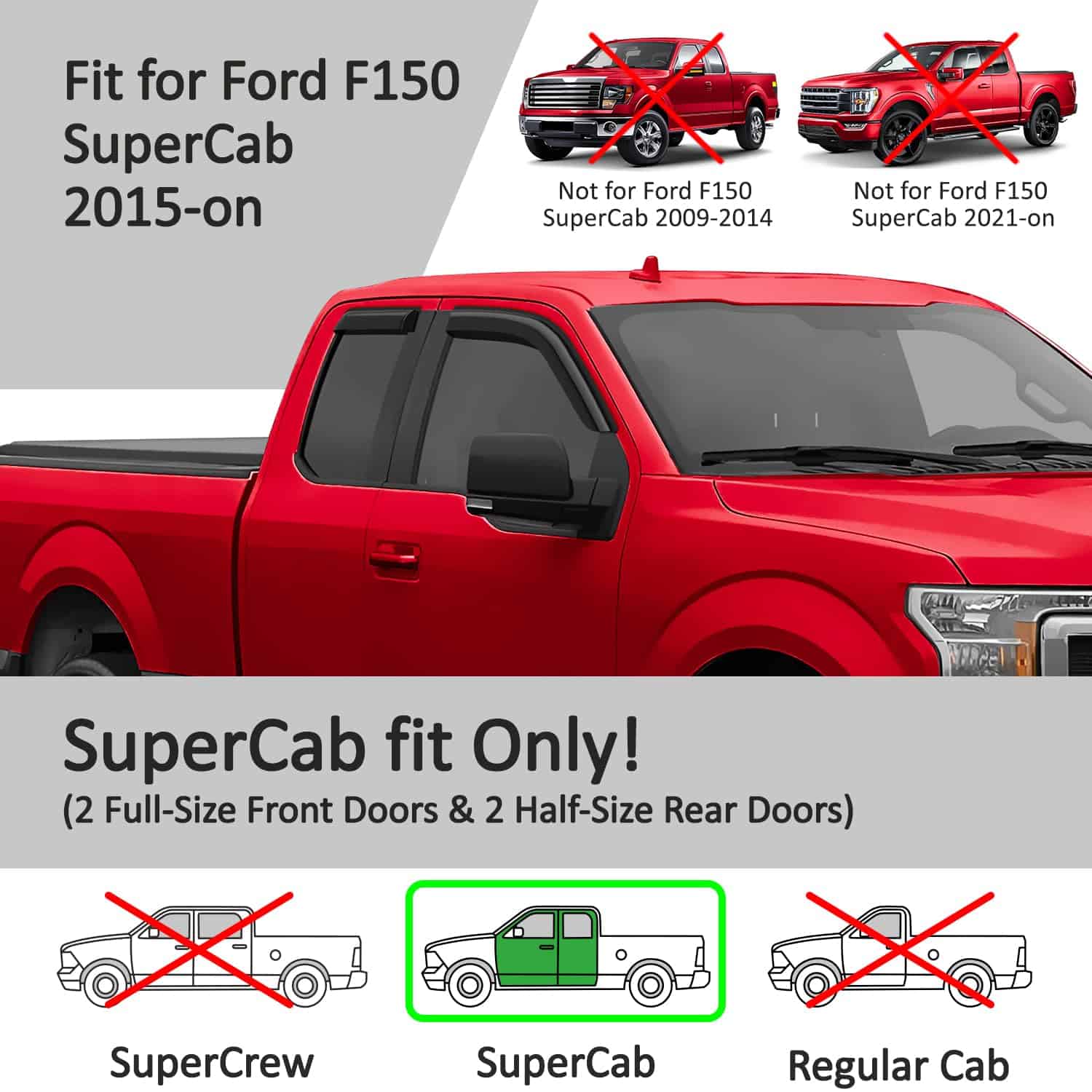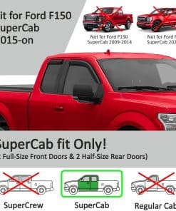 La instalación es rápida y sencilla, ya que cada visera de ventana exterior incluye cinta adhesiva de doble cara 3M para una fijación segura y duradera. Con un ajuste personalizado para varios modelos de Ford, estos deflectores son una adición práctica y estilizada a tu vehículo.