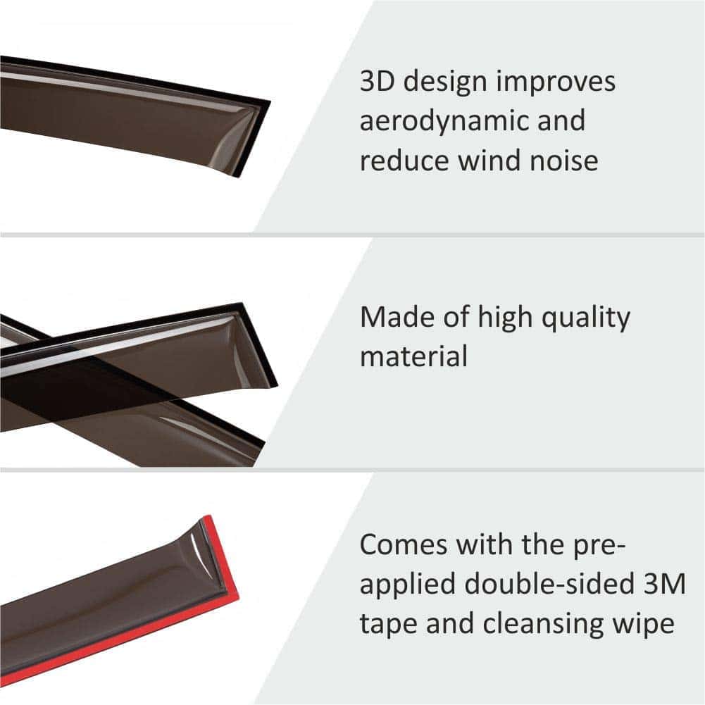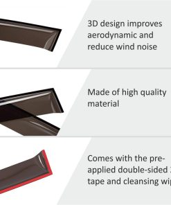 Bloquee los rayos del sol, las gotas de lluvia y el viento mientras conduce por la carretera con los deflectores de ventanas premium de Voron Glass. Cuando el clima finalmente comienza a calentarse o tienes que bajar la ventana cuando está lloviendo, no quieres que el sol, el viento o la lluvia te impidan disfrutar sentado detrás del volante de tu vehículo. Por eso creamos estos deflectores de ventanas de alta calidad de Voron Glass que se instalan sobre tus ventanas laterales de manera impecable para ayudar a mejorar la circulación en tu vehículo cuando la ventana está bajada, bloquear los rayos del sol que ingresan e incluso evitar que la lluvia gotee en el interior del reposabrazos. Mejor cobertura con un diseño de montaje exterior. Fuertes, duraderos y fáciles de instalar sin herramientas, estos deflectores de ventanas vienen en una amplia gama de tamaños para adaptarse a diferentes modelos de vehículos y tipos de carrocería. Aún mejor, cuentan con un diseño de montaje con cinta que no afecta el movimiento de la ventana hacia arriba o hacia abajo y aún así brinda cobertura durante todo el año para todo tipo de clima. Detalles del producto: – Juego de Deflectores de Ventanas de Calidad Premium Voron Glass (4 piezas); – Ayuda a Bloquear Lluvia, Viento y Rayos del Sol; – Colocación optimizada para soporte de ventana; – Incluye cinta adhesiva 3M de doble cara para una colocación segura; – Instalación rápida y sencilla (no se requieren herramientas); – Disponible para múltiples modelos de vehículos y estilos de carrocería; – Garantía de Calidad Confiable. Obtén los deflectores de ventanas premium de Voron Glass para tu vehículo hoy y comienza a disfrutar de un viaje más cómodo durante todo el año. Adquiérelos ahora haciendo clic en Agregar al Carrito arriba ¡hoy mismo!