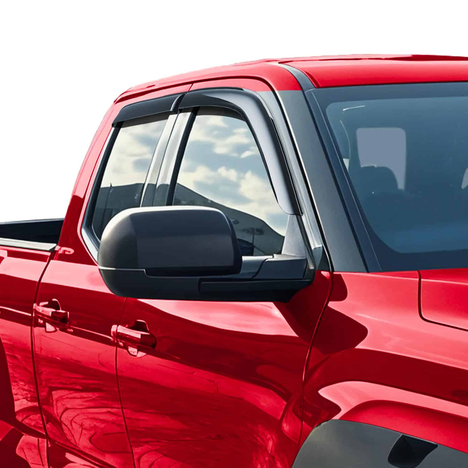 3. Deflectores de Ventana de Tamaño Completo Este juego de 4 piezas incluye deflectores de lluvia para el lado del pasajero y del conductor que crean un aspecto continuo que te protege de los rayos del sol, las gotas de lluvia y el viento mientras conduces con la ventana abajo.