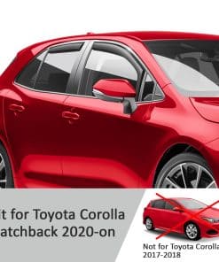 Deflectores de lluvia extra duraderos Voron Glass en canal para Toyota Corolla 2020-2025 Hatchback, Viseras de Ventana, Deflectores de Ventana, 4 Piezas – 200591. ¡Atención! ¡AJUSTE PERSONALIZADO solo para Toyota Corolla 2020-2025 Hatchback. Los deflectores de aire de ventana para automóviles Voron Glass están hechos con un material de policarbonato reforzado ultra resistente para proteger contra el calor, el viento, la lluvia y los daños ambientales cuando estás en la carretera. Este juego de 4 piezas incluye deflectores de lluvia para el lado del pasajero y del conductor que crean un aspecto sin costuras que te protege de los rayos del sol, las gotas de lluvia y el viento…Ideal para todas las condiciones climáticas, nuestros deflectores de ventana Voron Glass ayudan a mejorar la ventilación dentro y fuera de su automóvil para reducir el empañamiento de espejos y ventanas mientras aumentan la circulación de aire. Cada uno de nuestros visores de ventana de ventilación en canal viene con todas las herramientas necesarias que proporcionan una instalación segura y duradera. No se necesitan instrucciones complicadas.