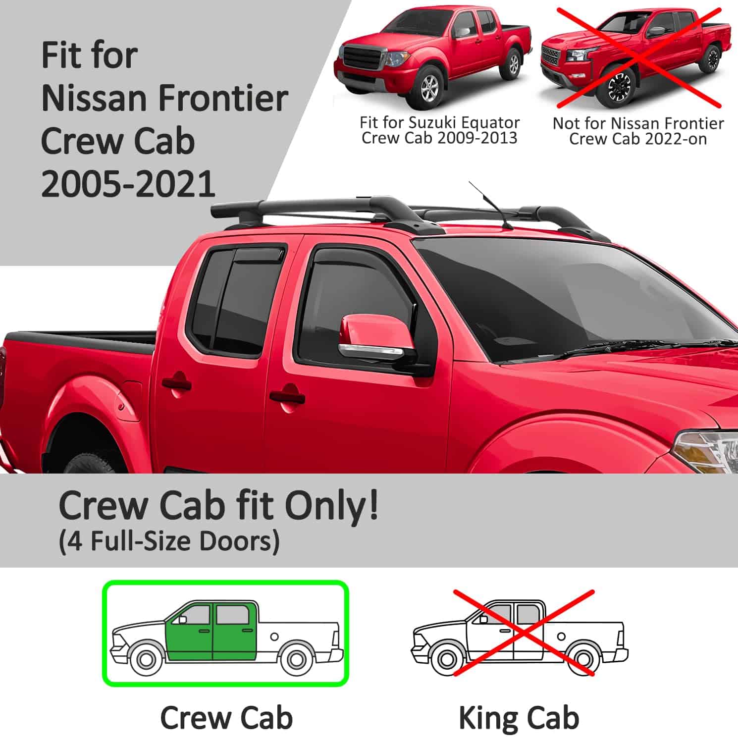 1. ¡Atención! ¡Estos accesorios para camionetas son HECHOS A MEDIDA solo para Nissan Frontier 2005-2021 Cabina y Media, Suzuki Equator 2009-2013 Cabina y Media.