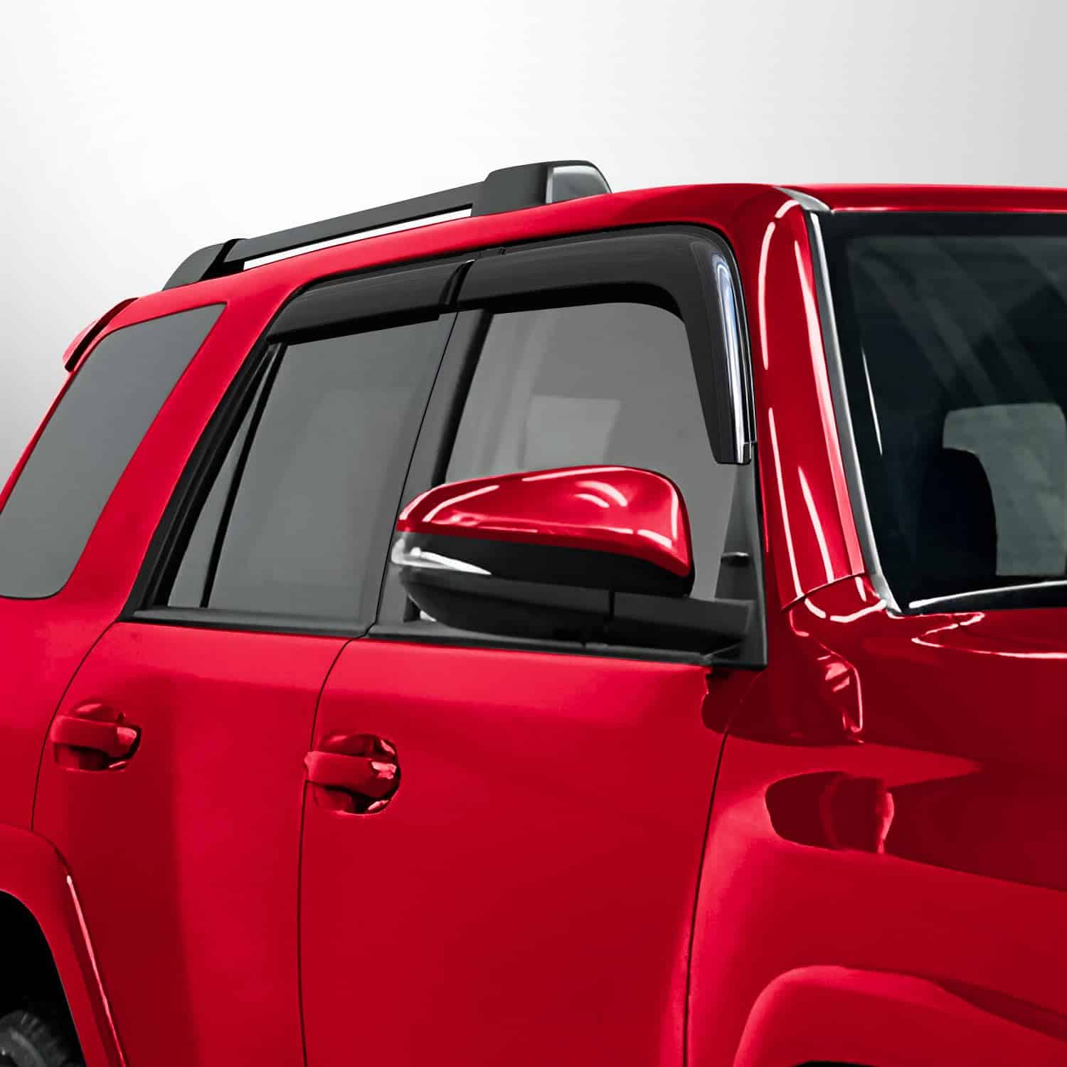 3. Deflectores de ventana lateral de tamaño completo Este set de 4 piezas incluye deflectores de lluvia para el lado del pasajero y del conductor que crean un aspecto uniforme que te protege de los rayos del sol, las gotas de lluvia y el viento mientras conduces con la ventana abierta.
