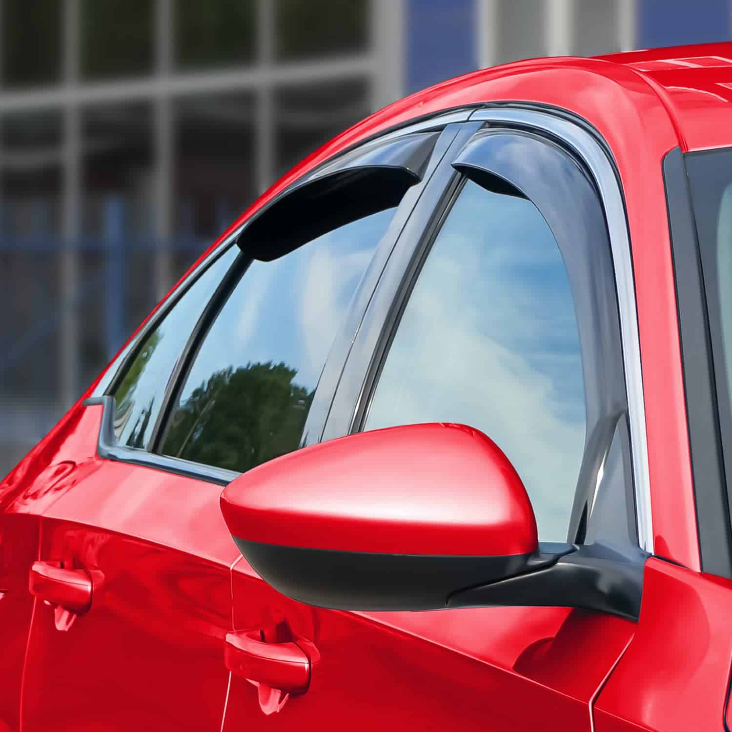 3. Deflectores de Ventana Largos a Tamaño Completo – Este juego de 4 piezas incluye deflectores de lluvia para el lado del pasajero y del conductor que crean un aspecto uniforme que te protege de los rayos del sol, gotas de lluvia y viento mientras conduces con la ventana abajo.