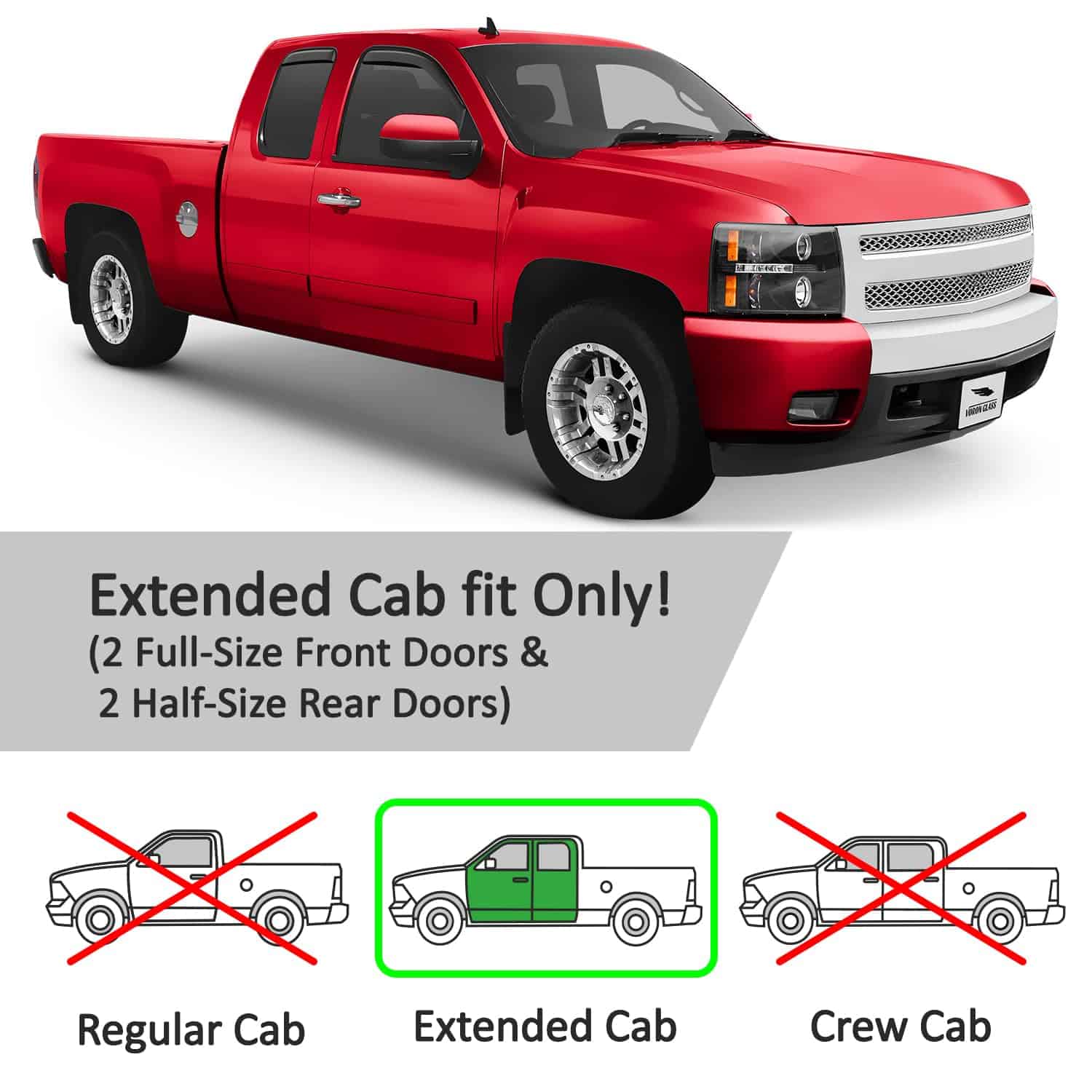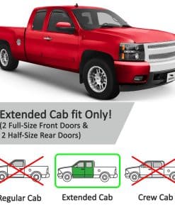 1. ¡Atención! ¡Los accesorios SOLO SON COMPATIBLES con la Cabina Extendida de GMC Sierra 1500 2007-2013, GMC Sierra 2500 HD 2007-2014, GMC Sierra 3500 HD 2007-2014, Chevrolet Silverado 1500 2007-2013, Chevrolet Silverado 2500 HD 2007-2014, Chevrolet Silverado 3500 HD 2007-2014.