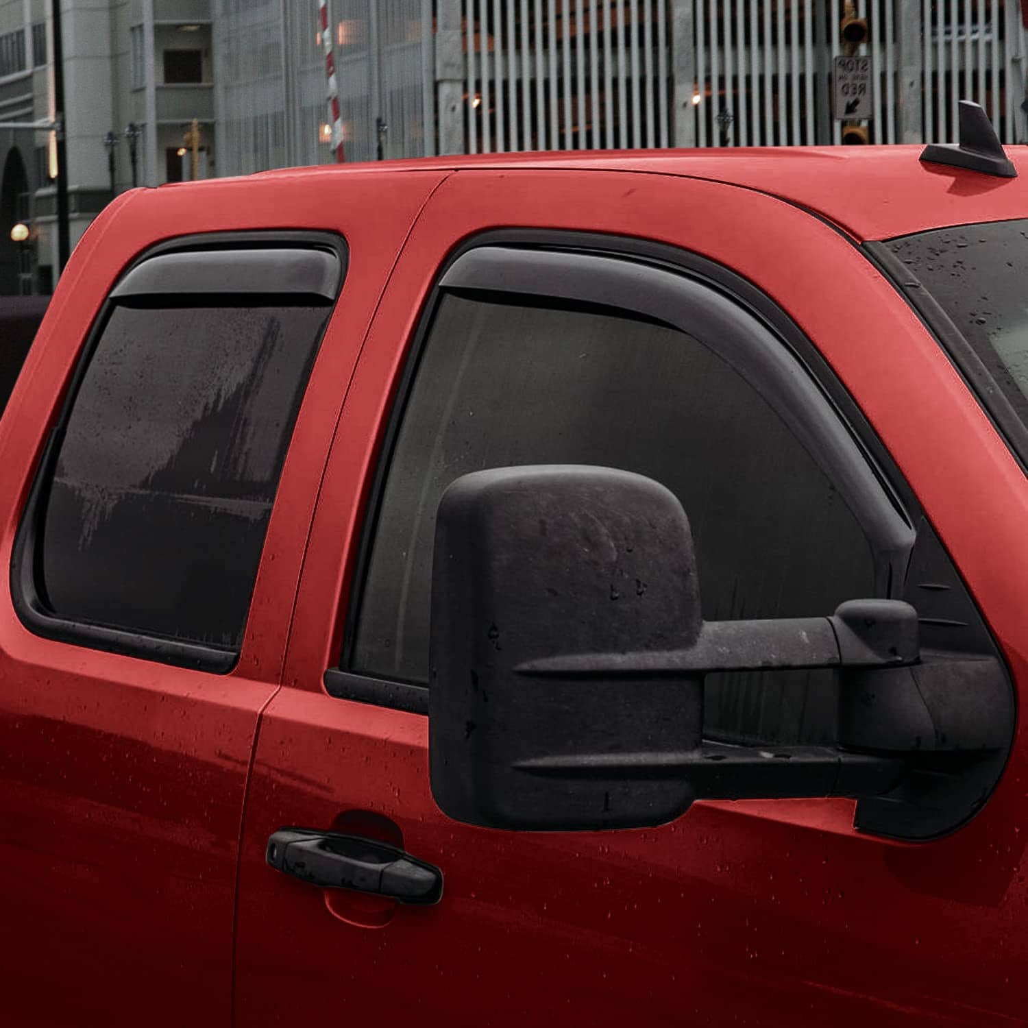 3. Deflectores de ventanas laterales de tamaño completo Este juego de 4 piezas incluye deflectores de lluvia del lado del pasajero y del conductor que crean un aspecto sin costuras que te protege de los rayos del sol, gotas de lluvia y viento mientras conduces con la ventana abajo.