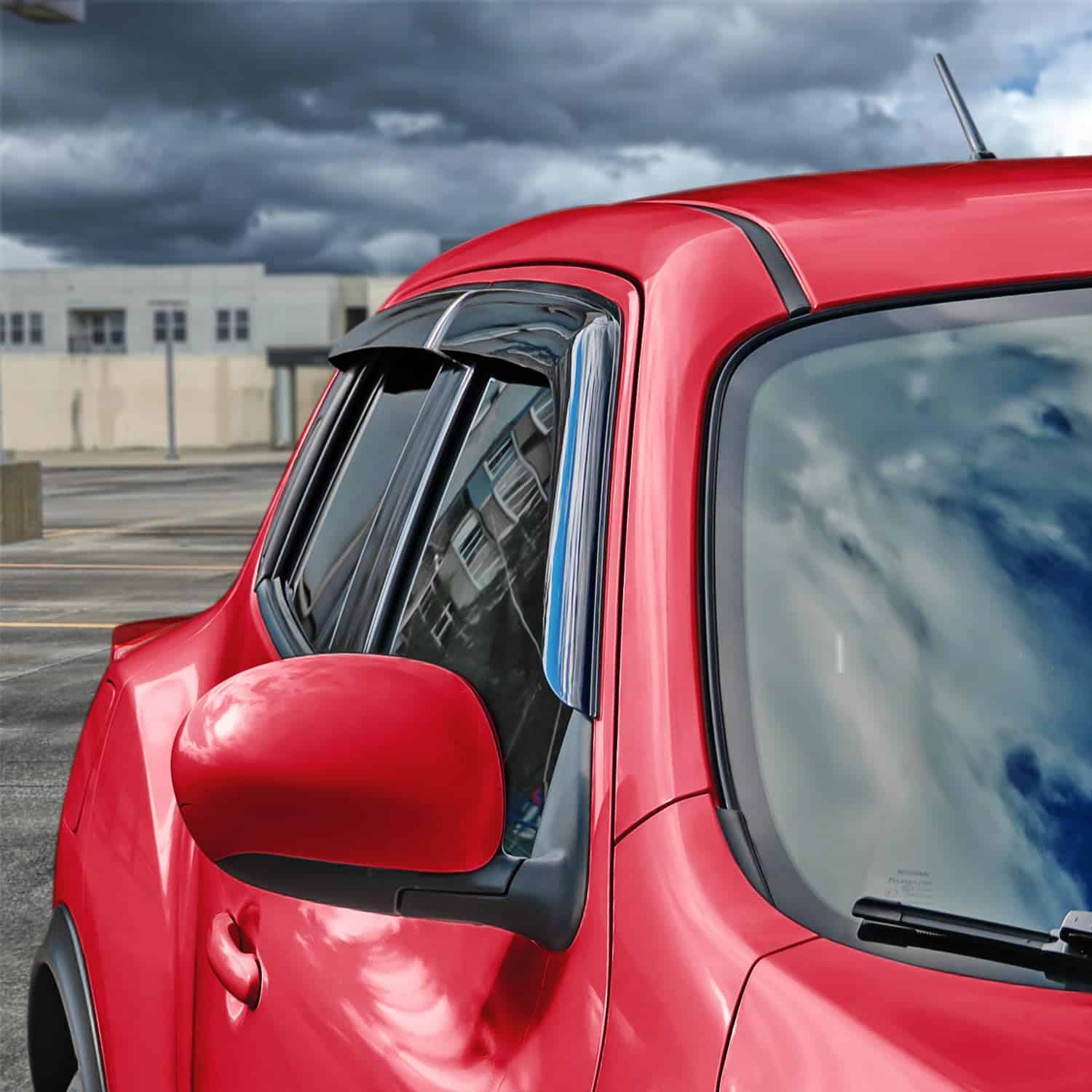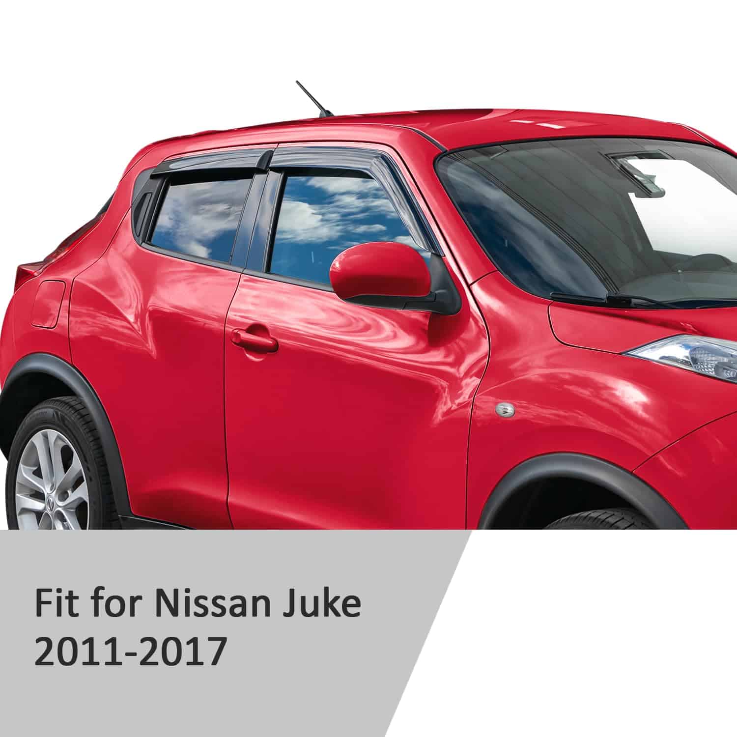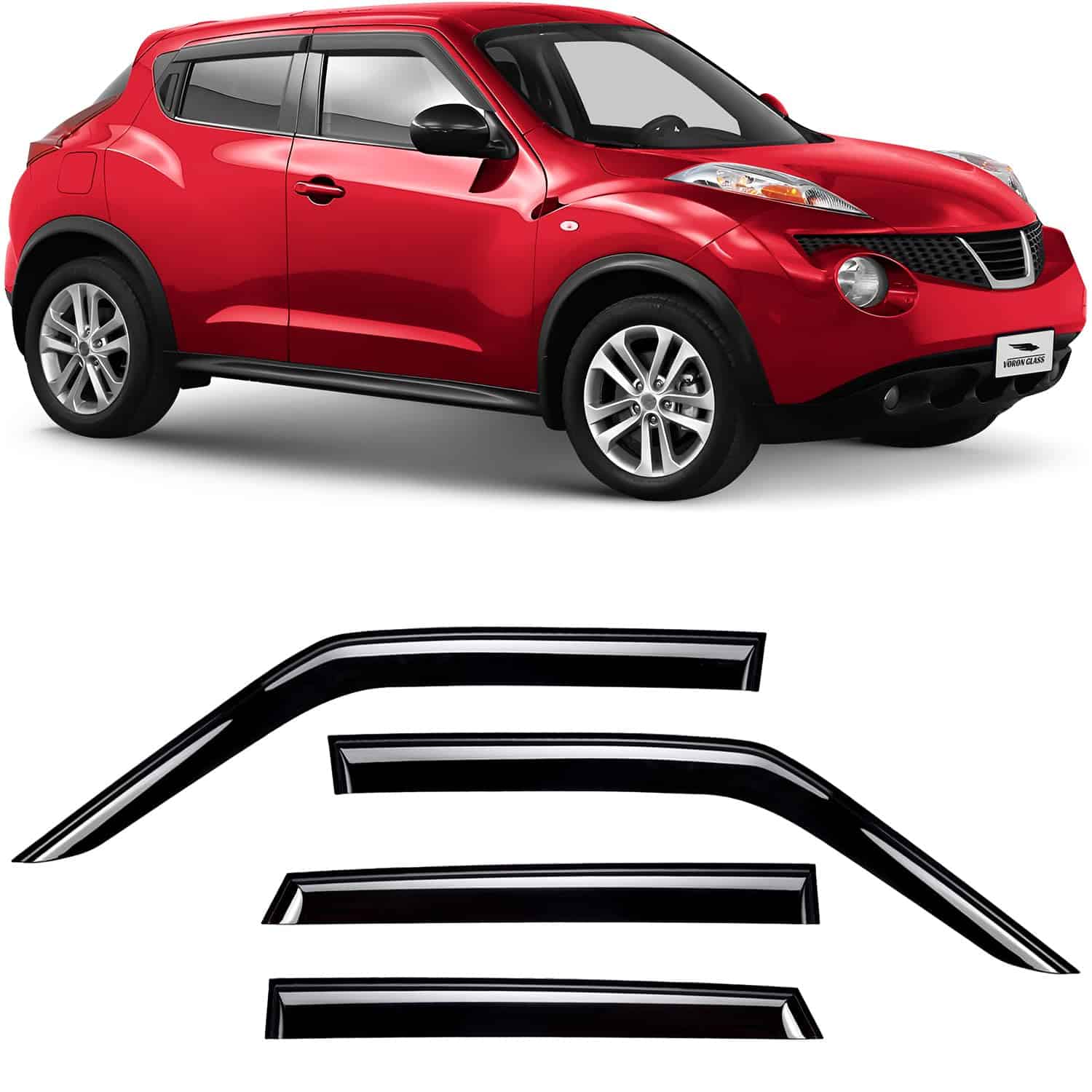1. ¡Atención! ¡AJUSTE A MEDIDA solo para Nissan Juke 2011-2017. 2. Polycarbonato Extra Duradero Los deflectores de aire para ventanas de automóviles Voron Glass están hechos con un material de policarbonato ultra resistente y reforzado para proteger contra el calor, viento, lluvia y daños ambientales cuando estás en la carretera. 3. Deflectores de Ventana de Tamaño Completo Este juego de 4 piezas incluye deflectores de lluvia para el lado del pasajero y del conductor que crean un aspecto perfecto que te protege de los rayos del sol, las gotas de lluvia y el viento mientras conduces con la ventana abajo. 4. Mejora de la Ventilación y el Flujo de Aire Ideal para todas las condiciones climáticas, nuestros deflectores de ventanas Voron Glass ayudan a mejorar la ventilación dentro y fuera de tu automóvil para reducir el empañamiento de los espejos y las ventanas mientras aumentan la circulación del aire. 5. Instalación Rápida y Fácil Cada uno de nuestros visores de ventanas de montaje externo viene con cinta adhesiva doble cara 3M que proporciona una instalación segura duradera. No se necesitan herramientas ni instrucciones complicadas.