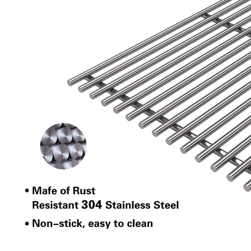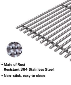 4. Dimensiones: 17 3/8″ x 6 3/8″ cada una o 17 3/8″ x 25 1/2″ rejilla de cocción de acero inoxidable total.