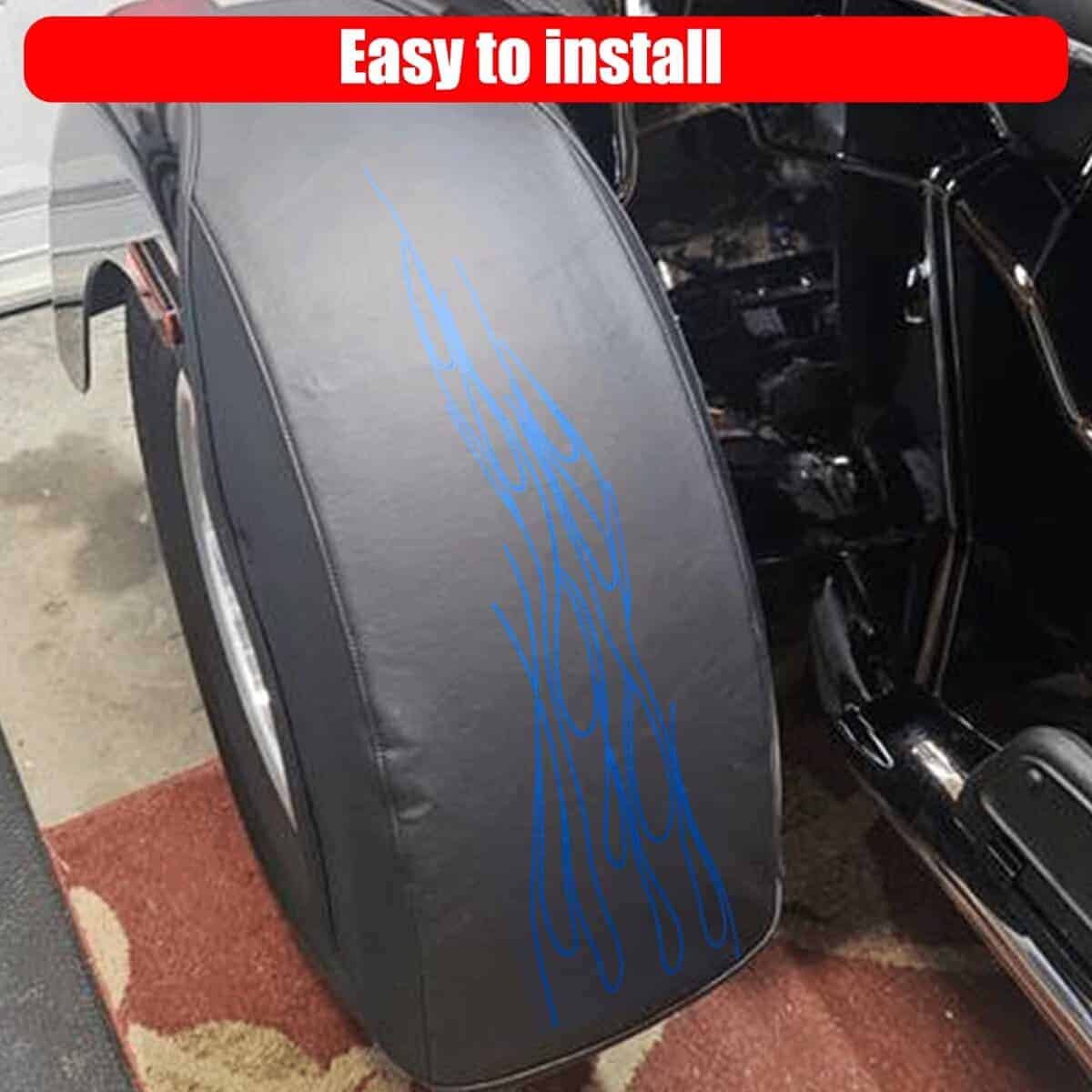 Bra de guardabarros trasero de llamas de cuero PU se ajusta a Harley Tri Glide Ultra Classic FLHTCUTG ’09-2023 ( NOTA- No se ajusta a los modelos Freewheeler).