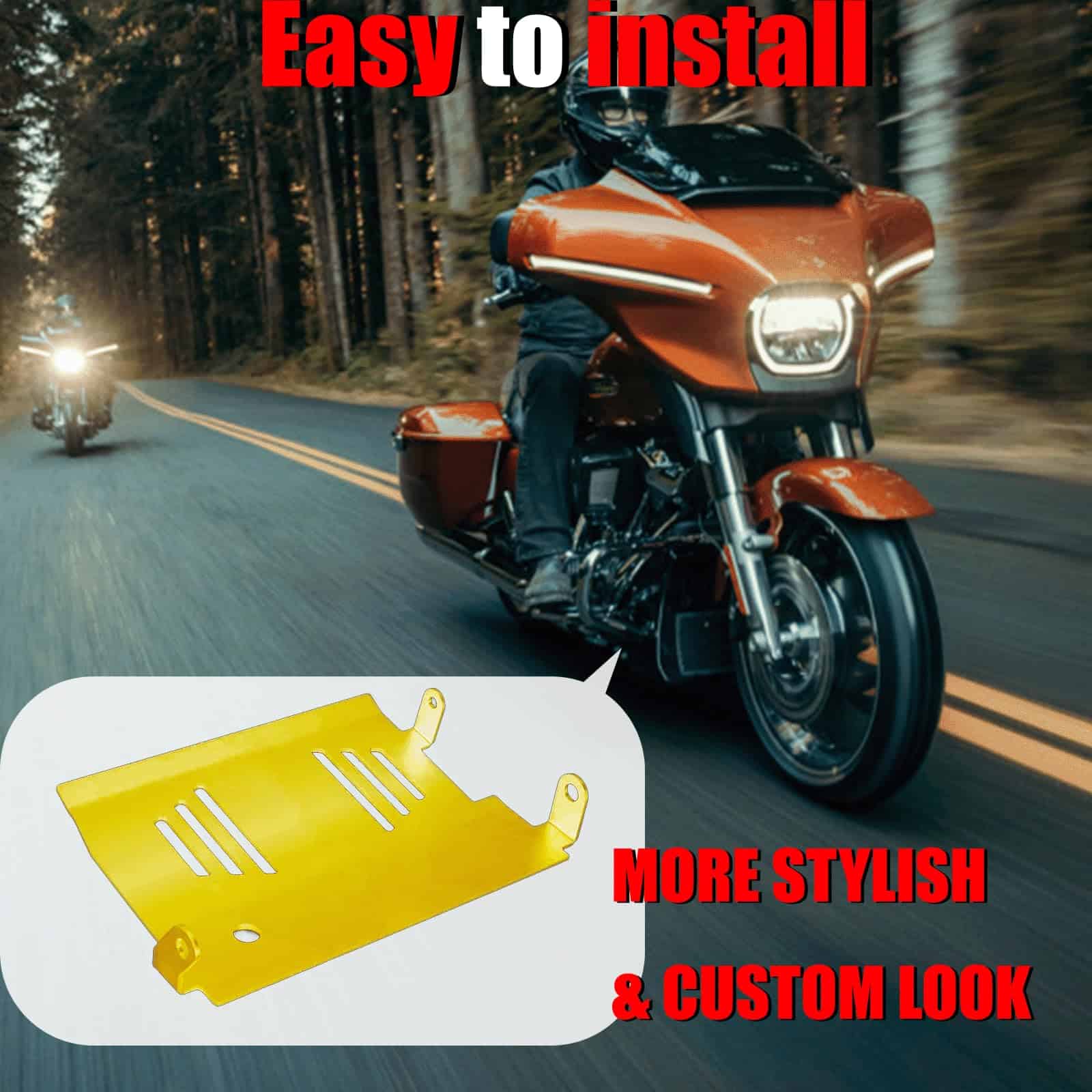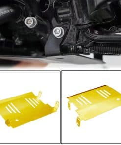 Esta placa de deslizamiento proporciona protección para las líneas de agua expuestas y el cableado que se encuentra entre el marco y el radiador en los modelos Touring 2024-Up.