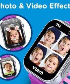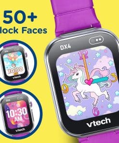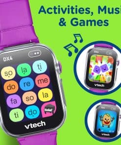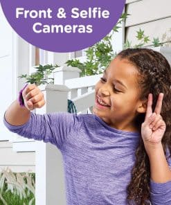 ¡Haz una pose! Este reloj inteligente cuenta con dos cámaras, una pantalla de alta resolución, un cuerpo de metal resistente al agua y una banda de reloj de moda que convierte a este reloj inteligente de funciones completas en la tecnología más genial. Sé creativo con las cámaras duales para personalizar tu cara de reloj, fotos y videos con los efectos y filtros. Encuentra monstruos de AR en el mundo real, compón música usando instrumentos y efectos de sonido, y juega emocionantes juegos de movimiento para ver cómo se dispara tu recuento de pasos. Practica la lectura de la hora con más de 50 caras de reloj o agita el reloj para escuchar la hora en voz alta. Descarga juegos adicionales y más desde el Learning Lodge. Para edades de 4+ años. Incluye batería de iones de litio recargable y cable micro-USB. No cargues con un adaptador de terceros.