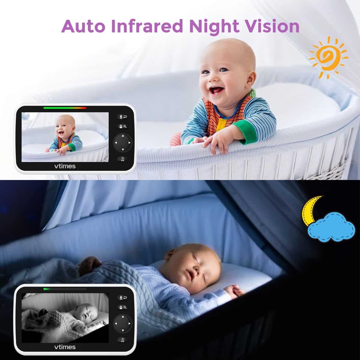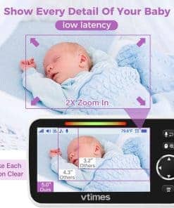 VTimes Monitor de Bebé con Pantalla LCD de 5″ y Cámara,