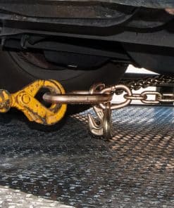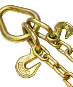 Ganchos Forjados Para Transportar Cualquier Vehículo Pequeño Cada pata contiene 24» de cadena de 5/16» G70 Alcance total de 40» desde el interior del anillo maestro hasta la cuna del gancho Ganchos de gancho forjados de 5/16» Grado 70 en la parte superior de cada pata proporcionan ajuste preciso de la longitud de la cadena Los ganchos de remolque de 8» de grado 70 forjados son muy fuertes e ideales para coches más pequeños, coches deportivos y vehículos de baja altura Los ganchos de 4» de grado 70 se adaptan a casi cualquier agujero de bastidor doméstico o extranjero y están en un eslabón separado para una fácil inserción Anillo maestro de 3/4″ resistente en la parte superior se conecta a casi cualquier gancho de cable de malacate Capacidad de carga segura de 4700 libras. Cumple con todas las especificaciones DOT