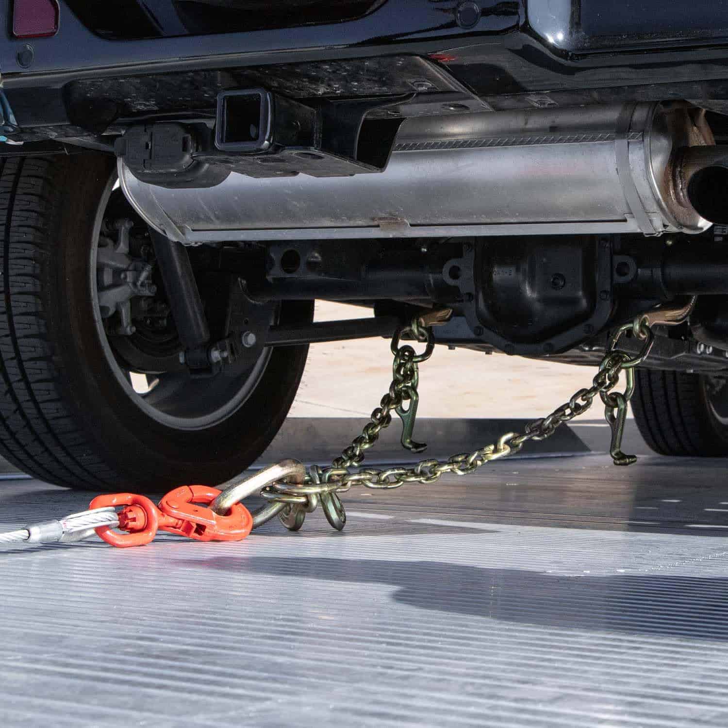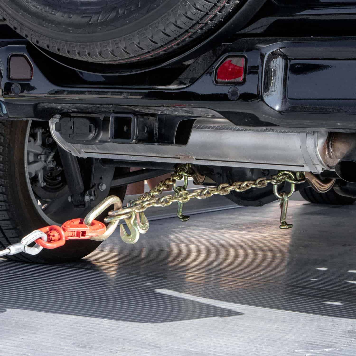 Ganchos J y T en Eslabones Separados Para Flexibilidad. Ganchos J de remolque forjados de Grado 70 de 8» son ideales para autos más pequeños, deportivos y vehículos con poca altura. Piernas de cadena certificadas de Grado 70 de 5/16» y eslabones de acoplamiento soldados en fábrica para una resistencia adicional y una larga vida útil. Cada pierna contiene 24″ de cadena G70 de 5/16″ Alcance total de 40» desde el interior del anillo maestro hasta la base del gancho. Ganchos de garra forjados de Grado 70 de 5/16″ en la parte superior de cada pierna proporcionan un ajuste preciso de la longitud de la cadena. Ganchos J forjados de G70 de 8″ con diseño geométrico. Ganchos J y ganchos en T de aleación en eslabones separados. Los ganchos en T de aleación se ajustan a la mayoría de orificios de chasis y anillas en D de correas de eje. Anillo maestro en pera forjado de 3/4» en la parte superior se conecta a casi cualquier gancho de cable de cabrestante. Carga de trabajo segura 4700 lbs. Cumple con todas las especificaciones de DOT.
