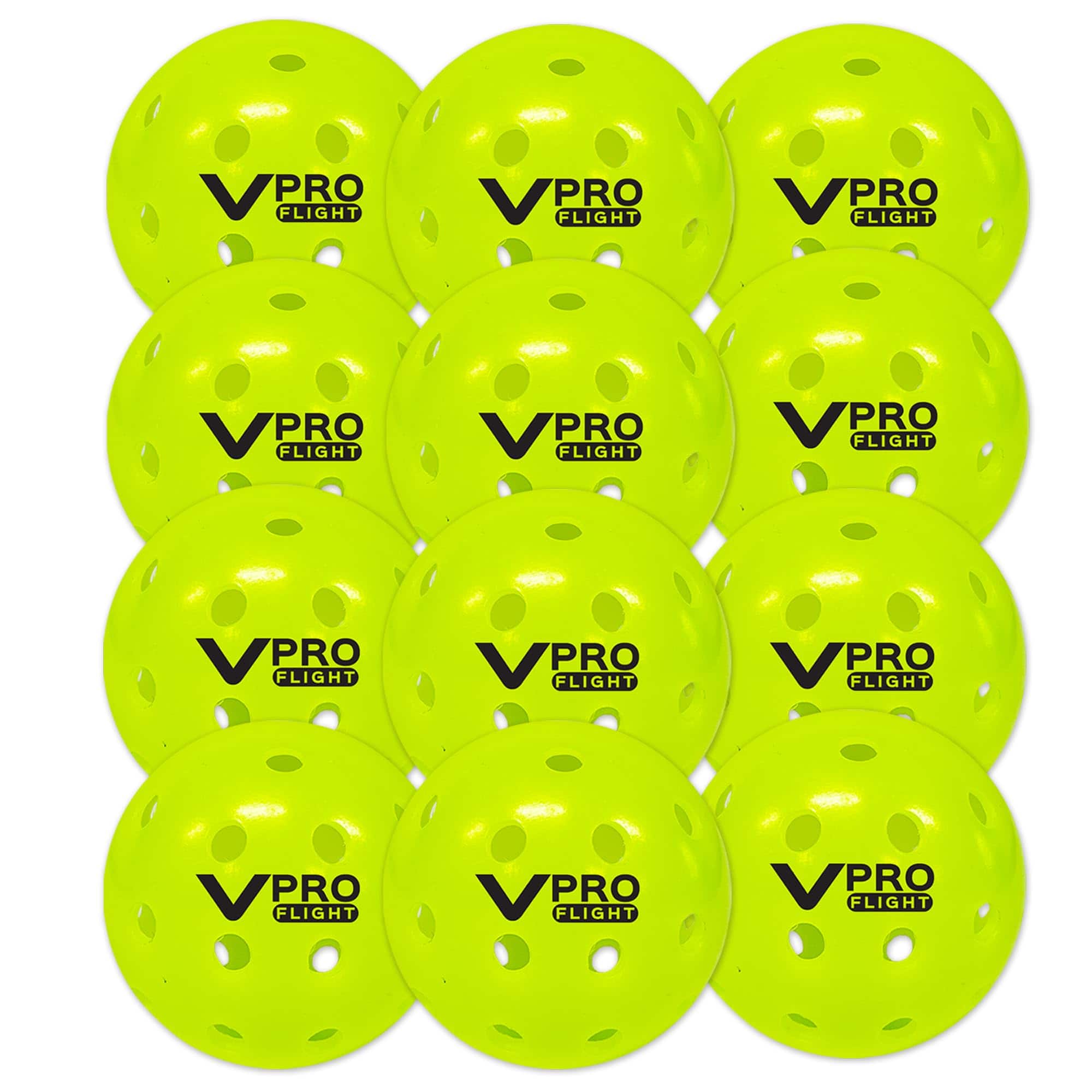 La Vulcan VPRO FLIGHT Outdoor Pickleball cuenta con una formulación de resina ultra limpia para un juego y una sensación consistentes en una variedad de condiciones. El diseño de 40 agujeros preferido por los profesionales y el color brillante Hi-Vis lo hacen ideal para horas de juego. Producido con ciencia e ingeniería avanzadas, incluyendo nuevas herramientas y protocolos de prueba, el VPRO FLIGHT se distingue de todas las demás pelotas con su código de lote impreso con láser; esto permite la trazabilidad de la calidad y el rendimiento de cada pelota. La Misión de Vulcan es establecer el estándar para el deporte, con calidad y rendimiento incomparables, para el juego de hoy. Pelota Oficial del Tour PPA y Major League Pickleball. Aprobada por USAPA.