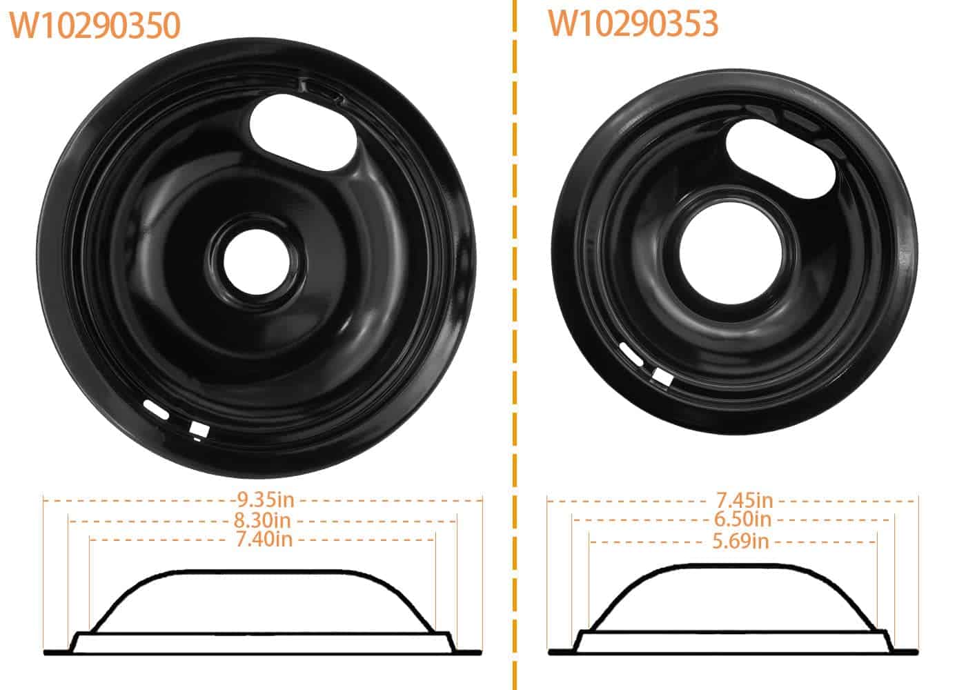 Tamaño: W10290353 6 pulgadas mide 7.45″; W10290350 8 pulgadas mide 9.35″