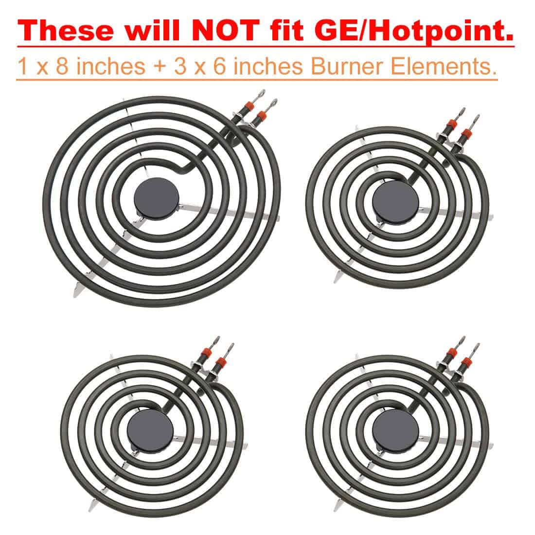 Conjunto de 4 Elementos Superficiales de Quemador para Rango Eléctrico (3) MP15YA 6″, (1) MP21YA 8″
