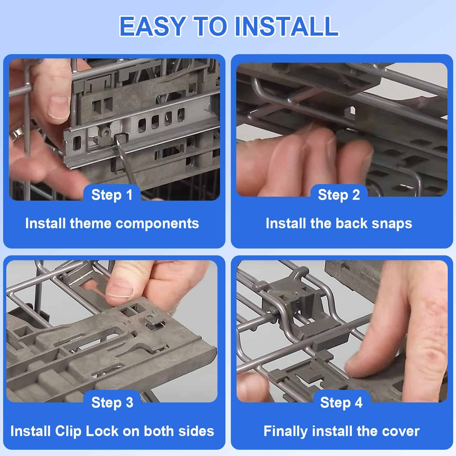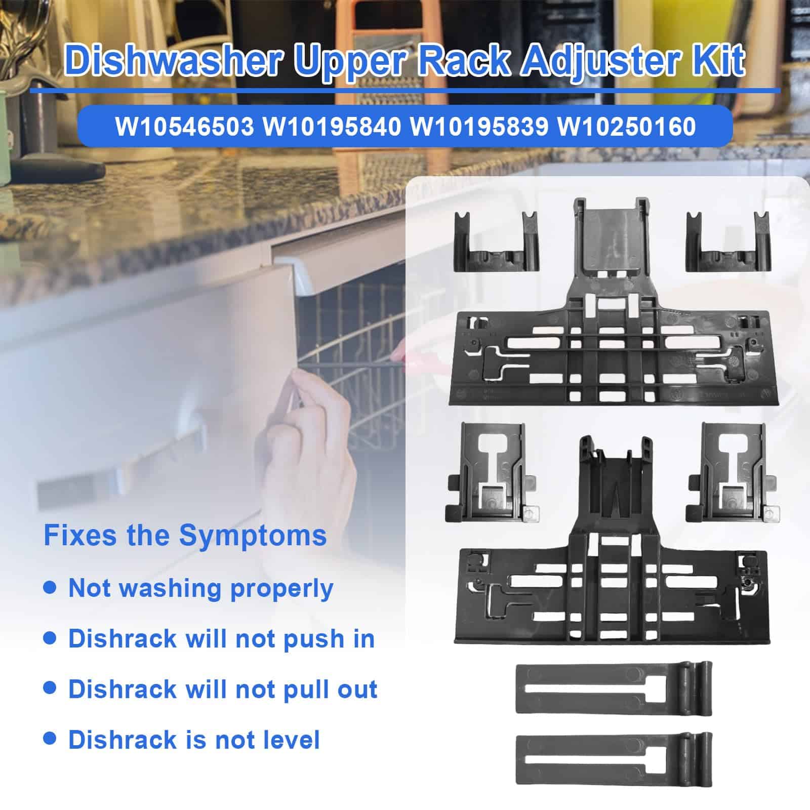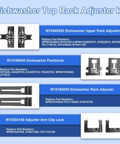 Ajustador de Repuesto para el Rack Superior del Lavavajillas: Este kit de ajustador de rack superior es compatible con una variedad de modelos de lavavajillas Whirlpool, KitchenAid, Maytag y Kenmore. Incluye 2 ajustadores de rack W10546503, 2 posicionadores de ajustador W10195840, 2 ajustadores de rack W10195839 y 2 clip de bloqueo del brazo del ajustador W10250160. Estas piezas de repuesto son capaces de resolver problemas comunes del lavavajillas, como el lavado deficiente, el rack que no se desliza correctamente o que no está nivelado. El kit es fácil de instalar, y si tienes alguna duda, puedes encontrar un video de instalación buscando «W10546503» en línea. Compra con confianza sabiendo que resolveremos cualquier problema que tengas con este kit de ajustador de rack superior para lavavajillas en 24 horas.
