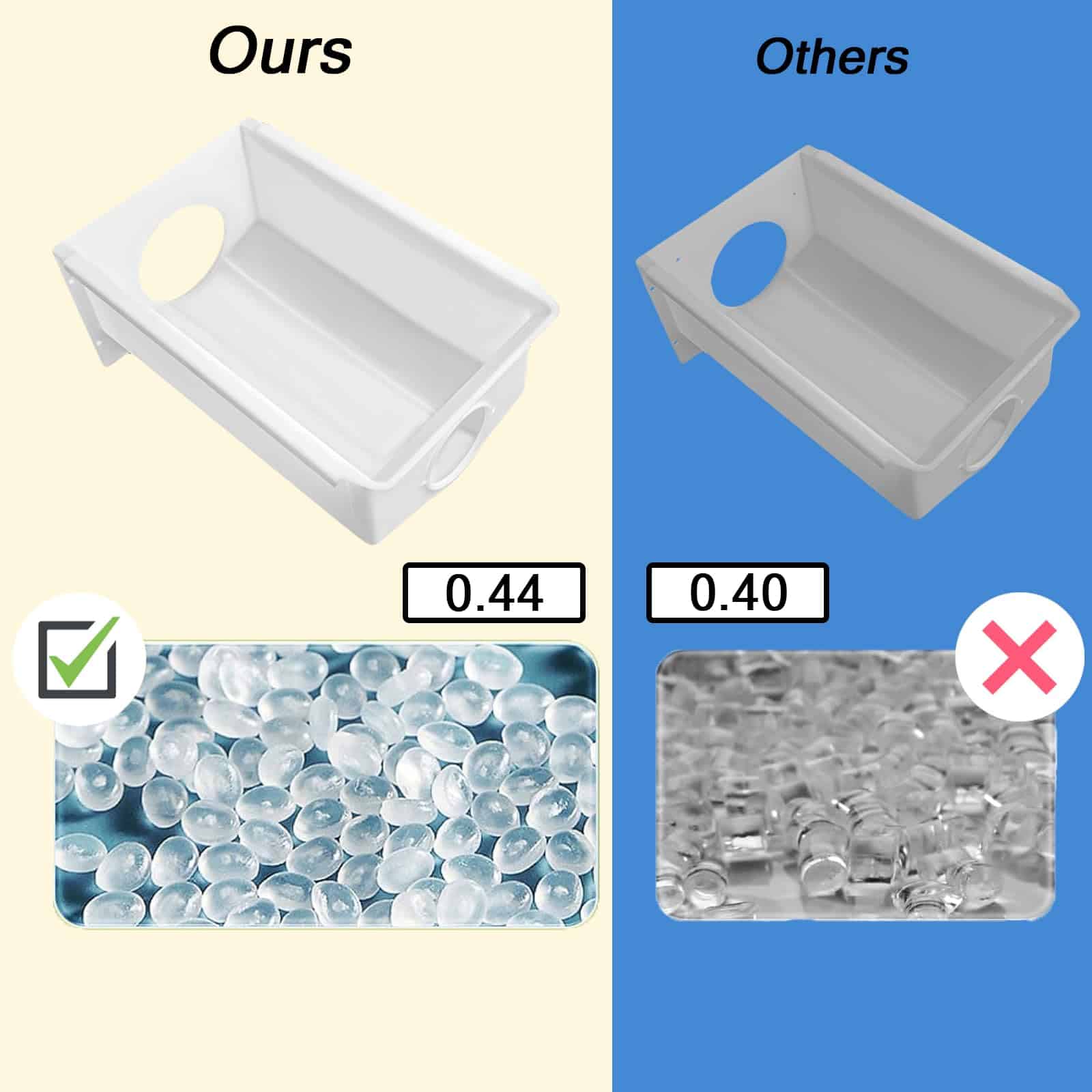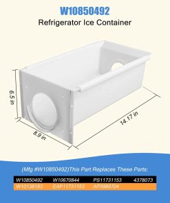 Espacio de almacenamiento amplio: El nuevo contenedor de hielo W10850492 proporciona un amplio espacio de almacenamiento para el fabricador de hielo de tu refrigerador, asegurando que siempre tengas suficiente hielo disponible. Materiales de alta calidad: Fabricado con materiales aptos para alimentos, este contenedor de hielo es seguro, higiénico y sin olores. Su alta resistencia y resistencia lo hacen duradero y duradero. La superficie suave permite una limpieza y mantenimiento fáciles, manteniendo tu refrigerador higiénico y funcionando de manera óptima. Modelos reemplazables: El contenedor de hielo W10850492 es un reemplazo perfecto para los números de pieza W10138193, W10670844 y PS11731153, asegurando la compatibilidad con varios modelos de refrigeradores. Marcas compatibles: Este contenedor de hielo es compatible con los refrigeradores Side-By-Side Whirlpool, Amana, Maytag y Kenmore, ofreciendo versatilidad y conveniencia para una amplia gama de usuarios. Instalación fácil: arreglar contenedores de hielo dañados, faltantes o rotos es muy fácil con este producto. Simplemente retire los tornillos y la bandeja antigua, coloque la nueva bandeja e instale los tornillos. Prioriza la seguridad durante todo el proceso para garantizar una instalación sin problemas.