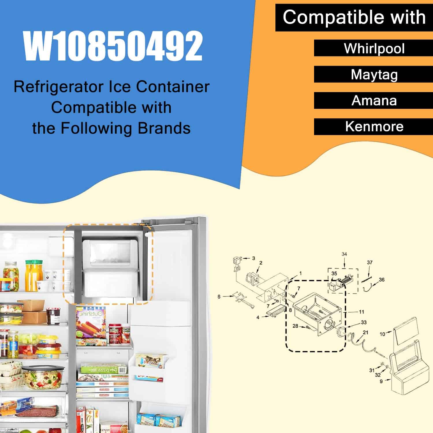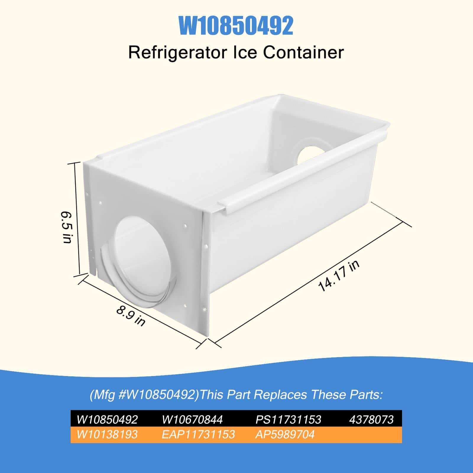 W10850492 Contenedor de hielo para fabricador de hielo,