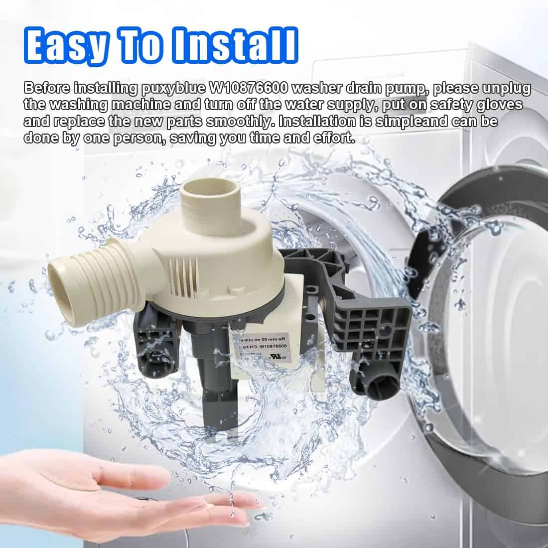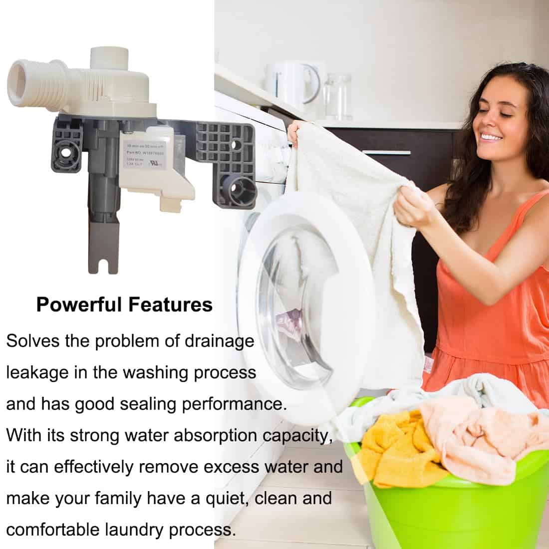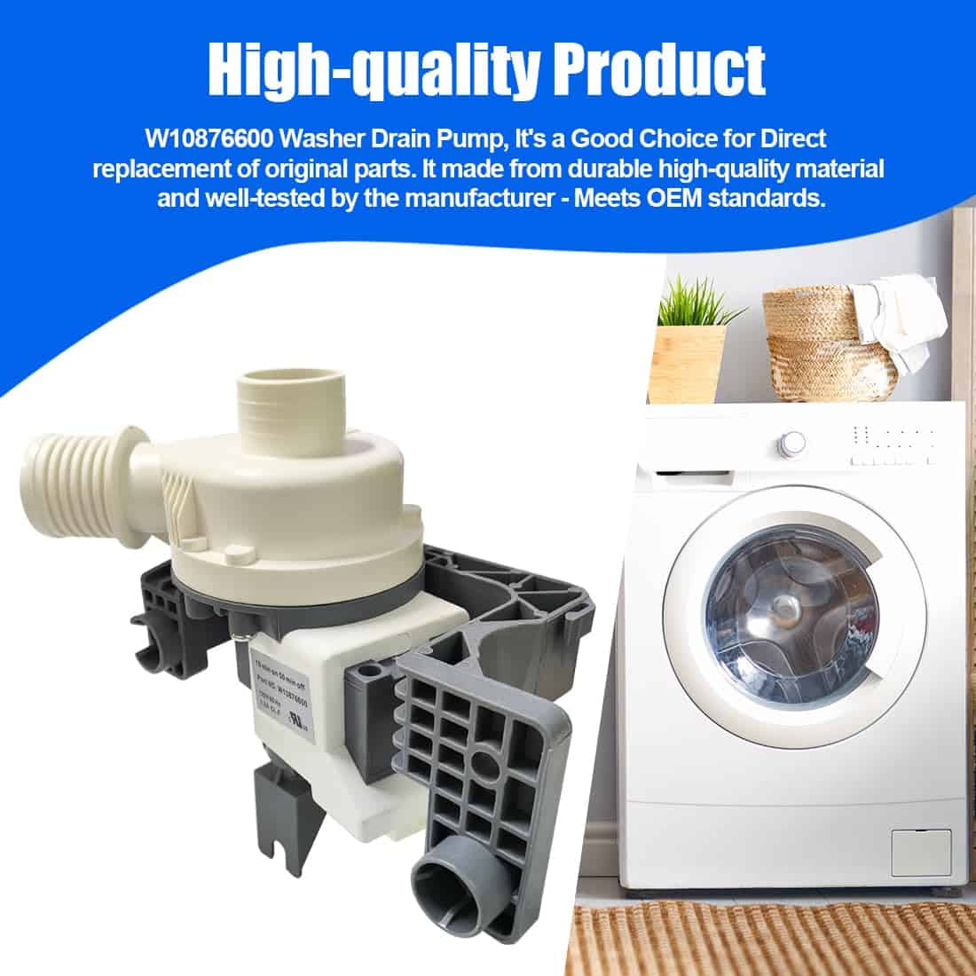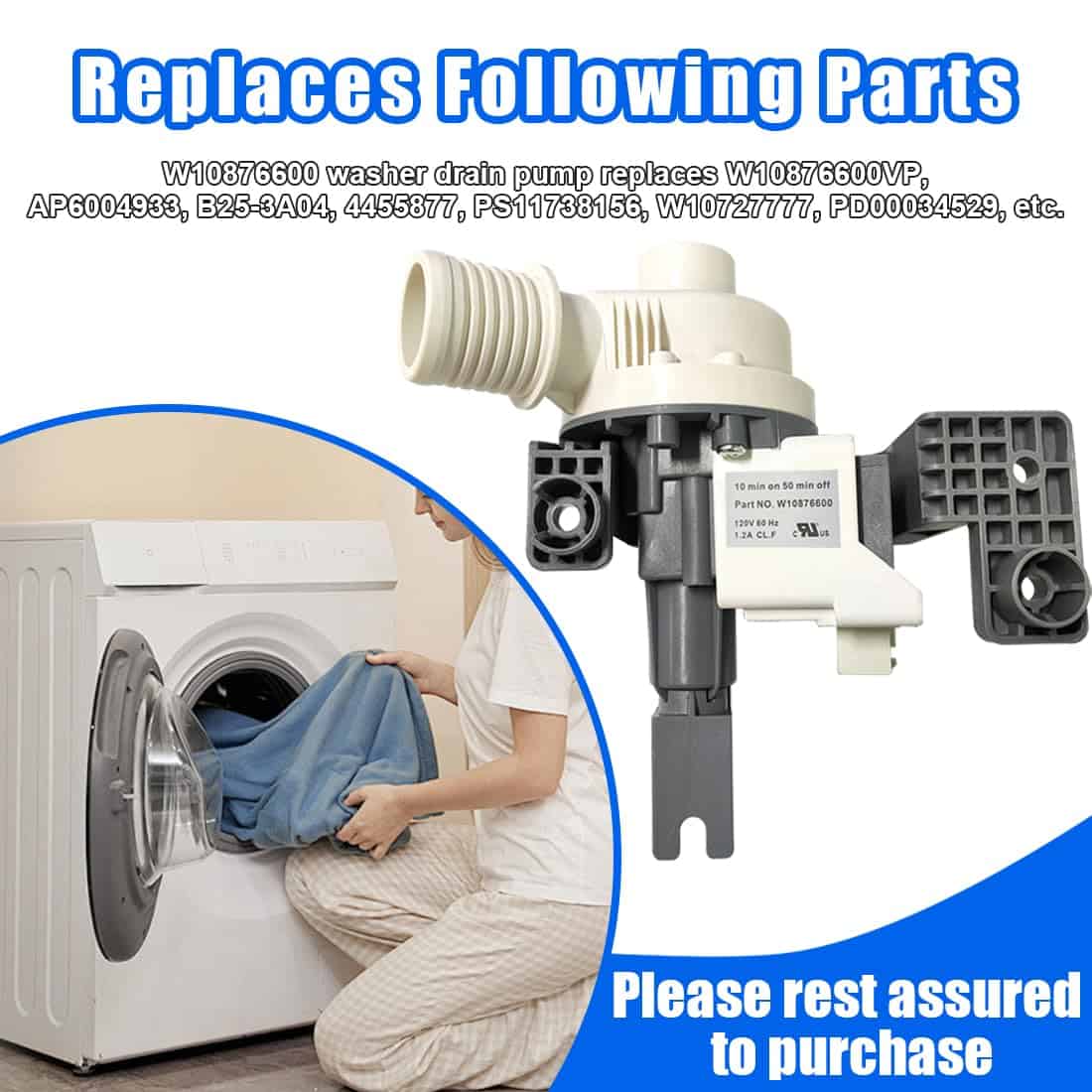 1. Reemplaza Números de Parte: W10876600 W10727777 Bomba de Drenaje para Lavadora reemplaza la Parte: B25-3A04, PD00034529, W10727777, W10876600VP, 4455877, AP6004933, PS11738156, EAP11738156.