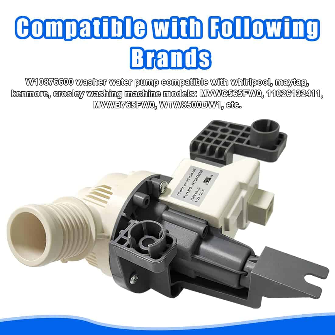 2. Modelos Compatibles: Esta Bomba de Drenaje para Lavadora W10876600VP para lavadora whirlpool, maytag, kenmore y crosley. Apto para lavadora whirlpool WTW8500DW1, WTW5000DW1, WTW5000DW2, WTW7000DW1, WTW7000DW2, etc. Apto para lavadora maytag MVWC565FW0, MVWB765FW0, MVWB865GW1, MVWB955FC0, MVWB955FC1, MVWB955FW0, etc. Apto para lavadora kenmore 11026132411,11020372710, 11020372711, 11022352510, 11022352511, etc. Apto para lavadora crosley CAW42114GW0, CAW42114GW1, ZAW47115GW0, etc.