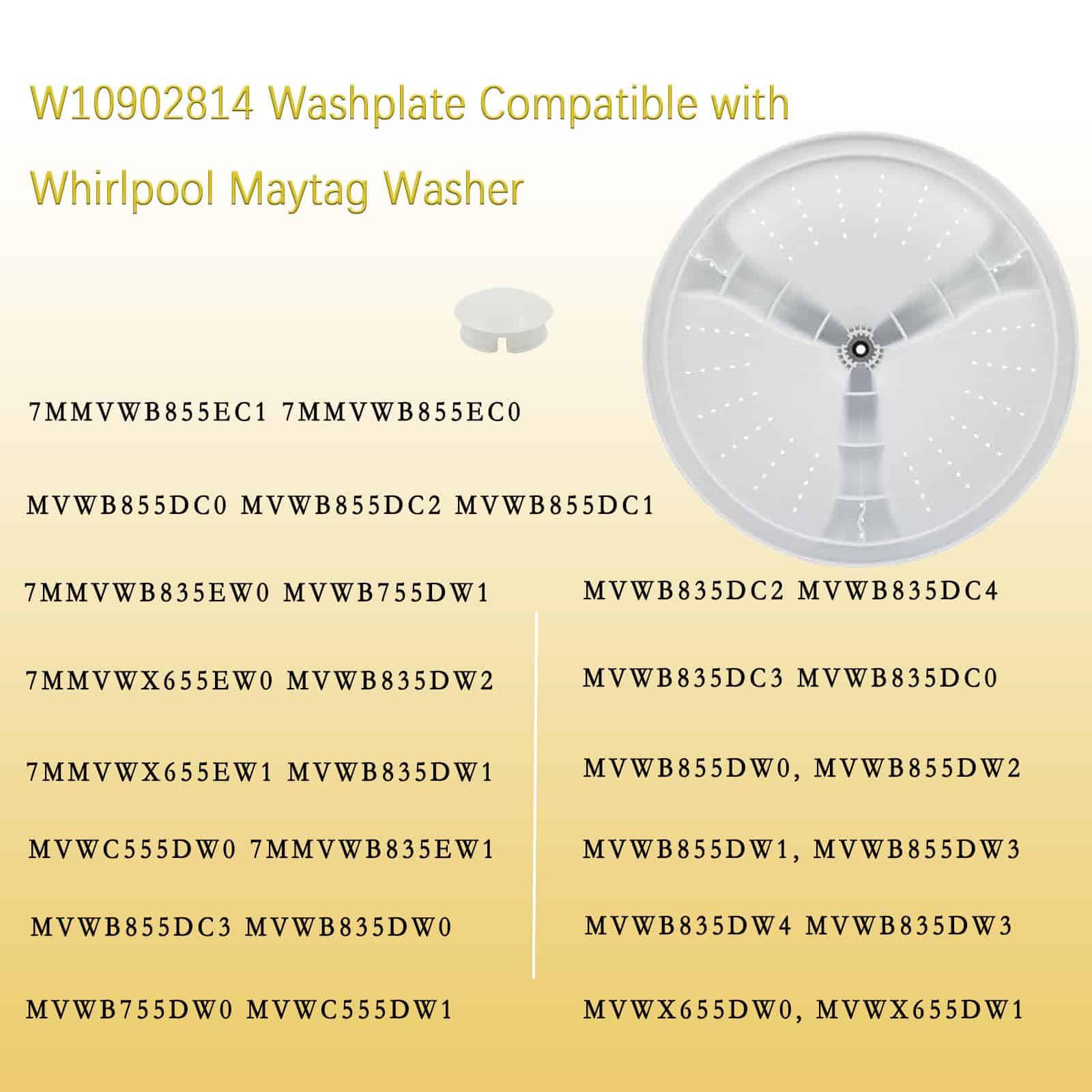 2. Compatibilidad: La washplate MVWX655DW1 es compatible con la lavadora Maytag W10902814, partes de lavadora Maytag, agitador de lavadora Whirlpool washplate Maytag, W10609480 washplate Maytag.