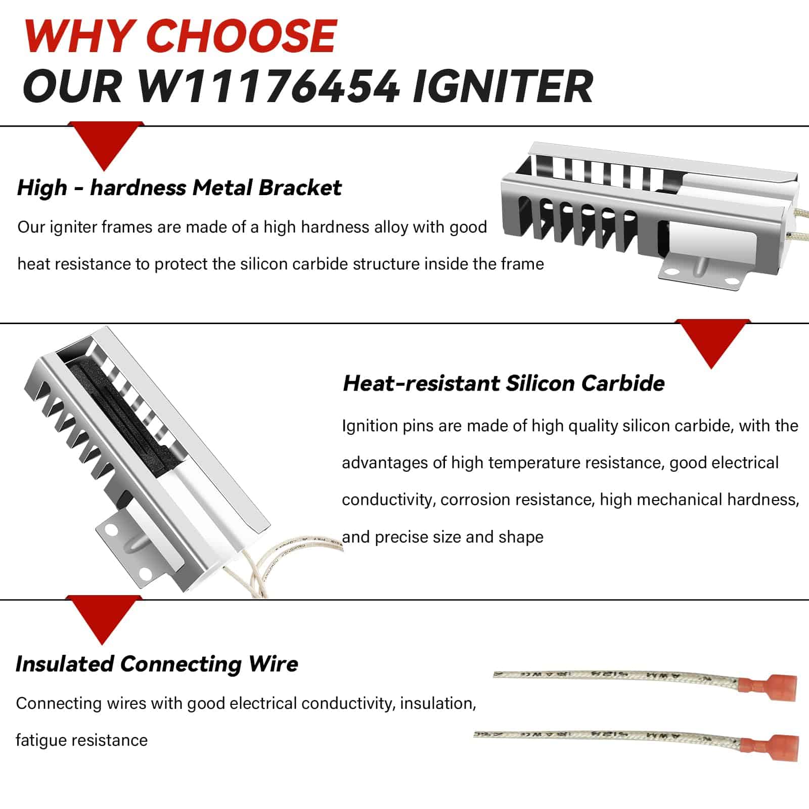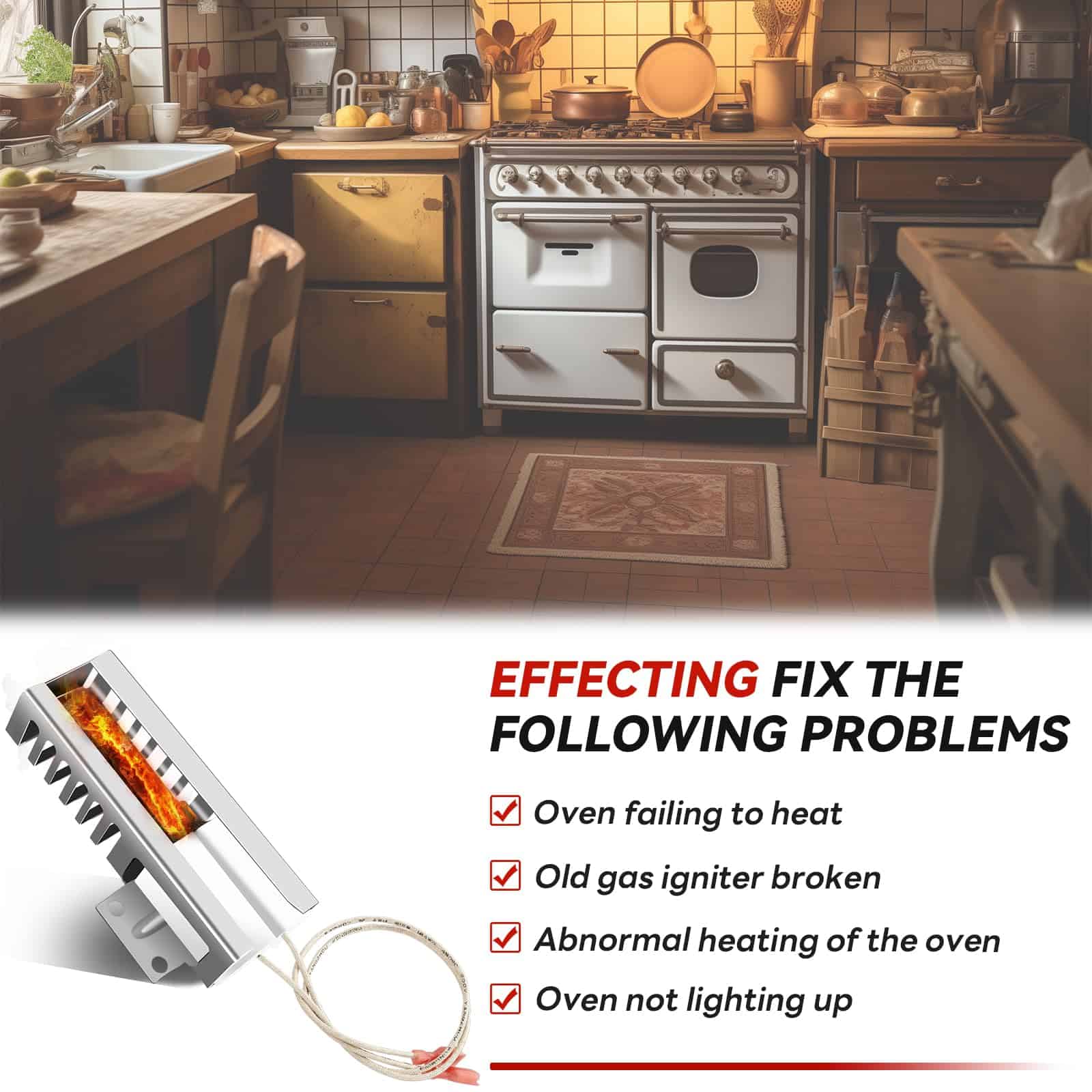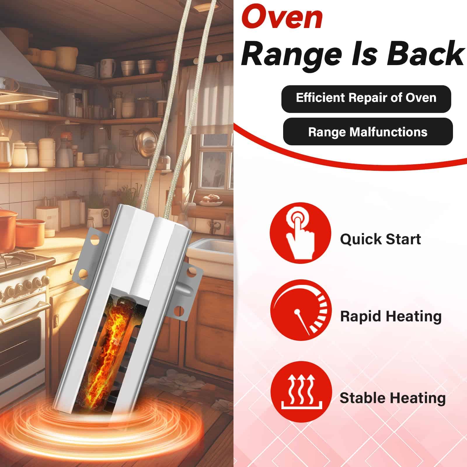 5. Fácil instalación: Puede instalar o reemplazar el ignitor usted mismo con herramientas sencillas, lo que no solo prolonga la vida útil de su horno, sino que también ahorra tiempo y dinero