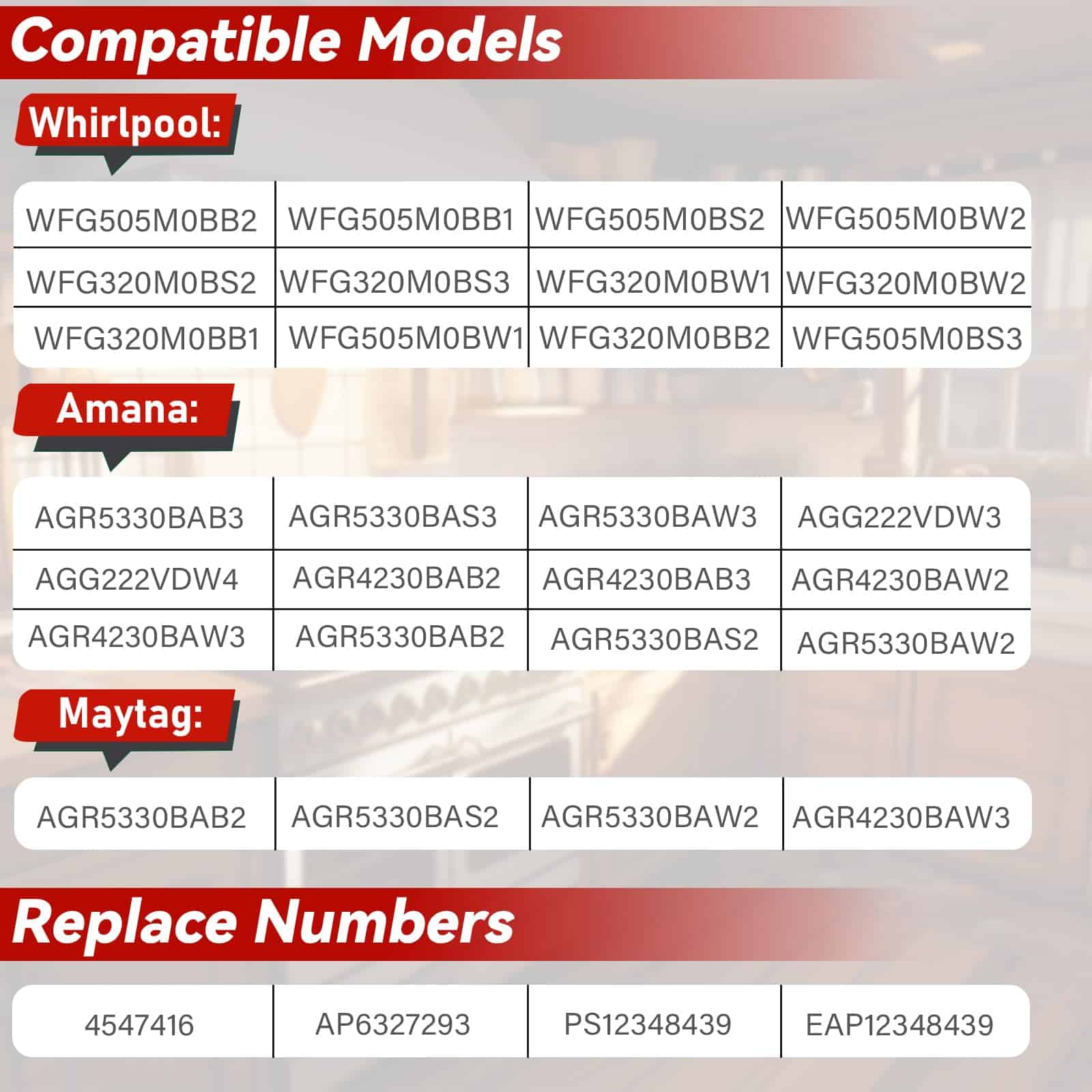 1. Pieza de repuesto exacta: El ignitor W11176454 es compatible con los siguientes modelos de Whirlpool: WFG505M0BB2, WFG505M0BB1, WFG505M0BS2, WFG505M0BW2, WFG320M0BS2, WFG320M0BS3, WFG320M0BW1, WFG320M0BW2, WFG320M0BB1, WFG505M0BW1, WFG320M0BB2, WFG505M0BS3, y modelos de Amana: AGR5330BAB3, AGR5330BAS3, AGR5330BAW3, AGG222VDW3, AGG222VDW4, AGR4230BAB2, AGR4230BAB3, AGR4230BAW2, AGR4230BAW3, AGR5330BAB2, AGR5330BAS2, AGR5330BAW2, y modelos de Maytag: AGR5330BAB2, AGR5330BAS2, AGR5330BAW2, AGR4230BAW3.
