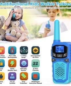 4. Walkie-Talkies multifuncionales de Tecnología Avanzada: Licencia gratuita, VOX, Alertas meteorológicas NOAA, retroiluminación LCD, volumen ajustable, conector para auriculares y bloqueo de teclado para todas las edades, permite una comunicación segura y clara con mayor disponibilidad y tecnología más madura. Puede ser una opción de regalo para niños y miembros de la familia, más protección y fácil de recordarles su seguridad.